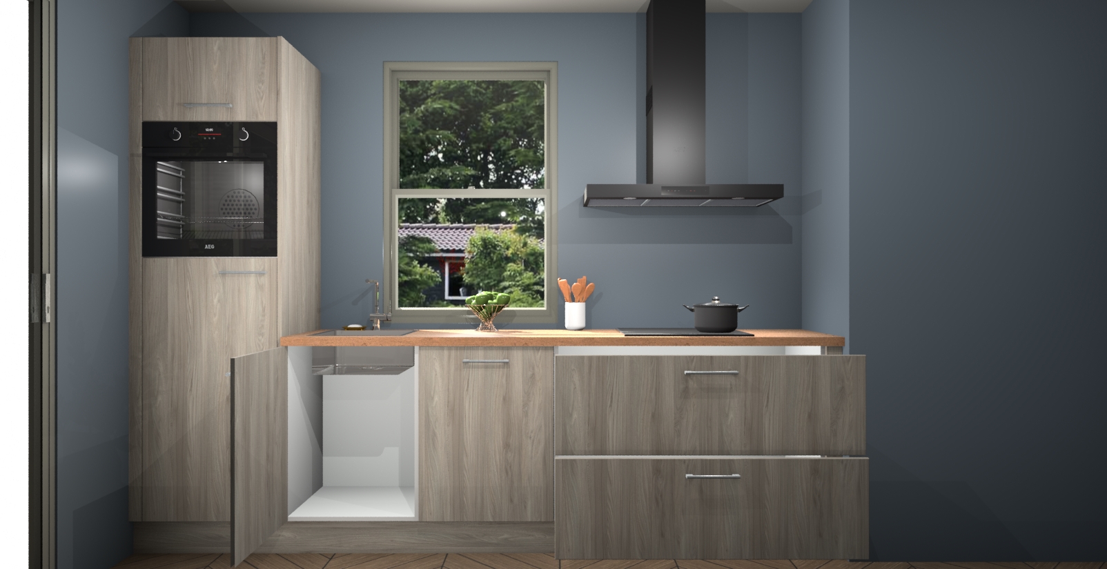 Dankzij de afwerking past de Olm keuken Toulouse naadloos in elk huis of appartement. De soft-close deuren geven je extra gemoedsrust, want ze sluiten vanzelf en slaan nooit dicht! En alsof dat nog niet genoeg is, worden deze kasten volledig gemonteerd geleverd, dus maak je geen zorgen over eventuele installatieproblemen.