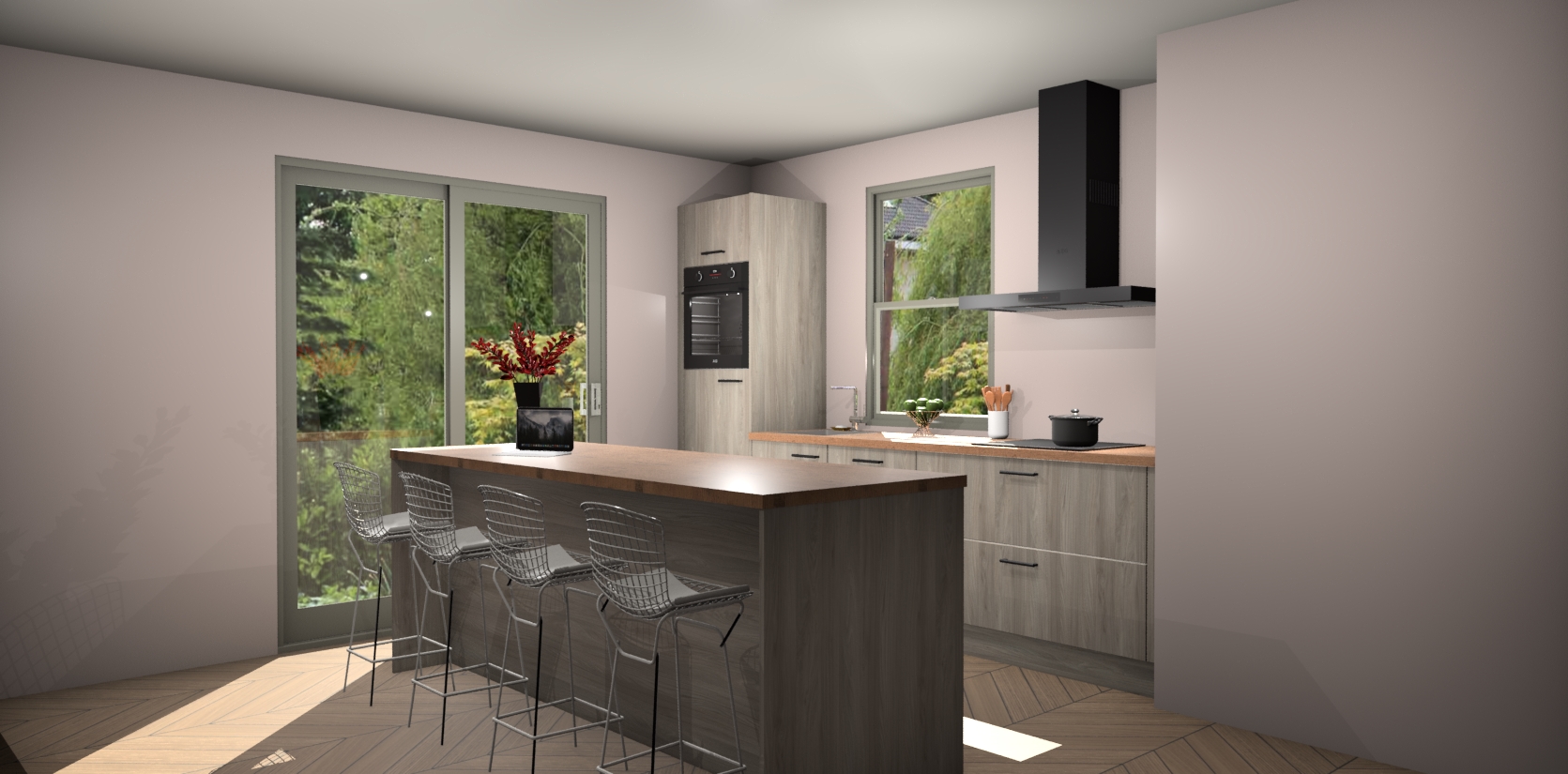 Een stijlvolle en praktische keuken als deze mag gezien worden. Dankzij de prachtige Olm afwerking wordt de keuken gemakkelijk het middelpunt van uw huis - hij ziet er geweldig uit onder allerlei lichtomstandigheden, van dag tot nacht!