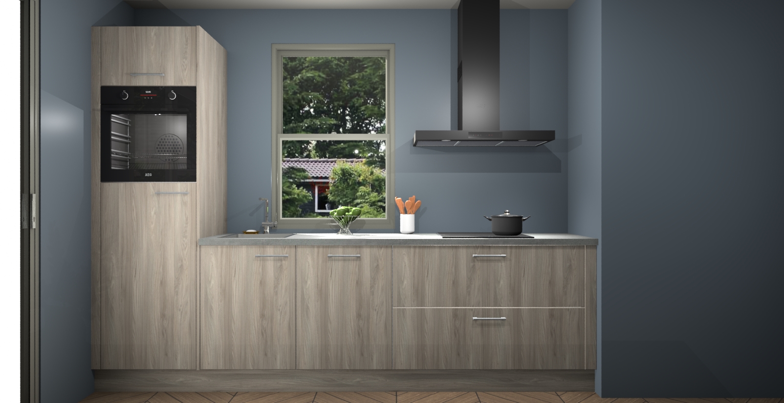 Een stijlvolle en praktische keuken als deze mag gezien worden. Dankzij de prachtige Olm afwerking wordt de keuken gemakkelijk het middelpunt van uw huis - hij ziet er geweldig uit onder allerlei lichtomstandigheden, van dag tot nacht!