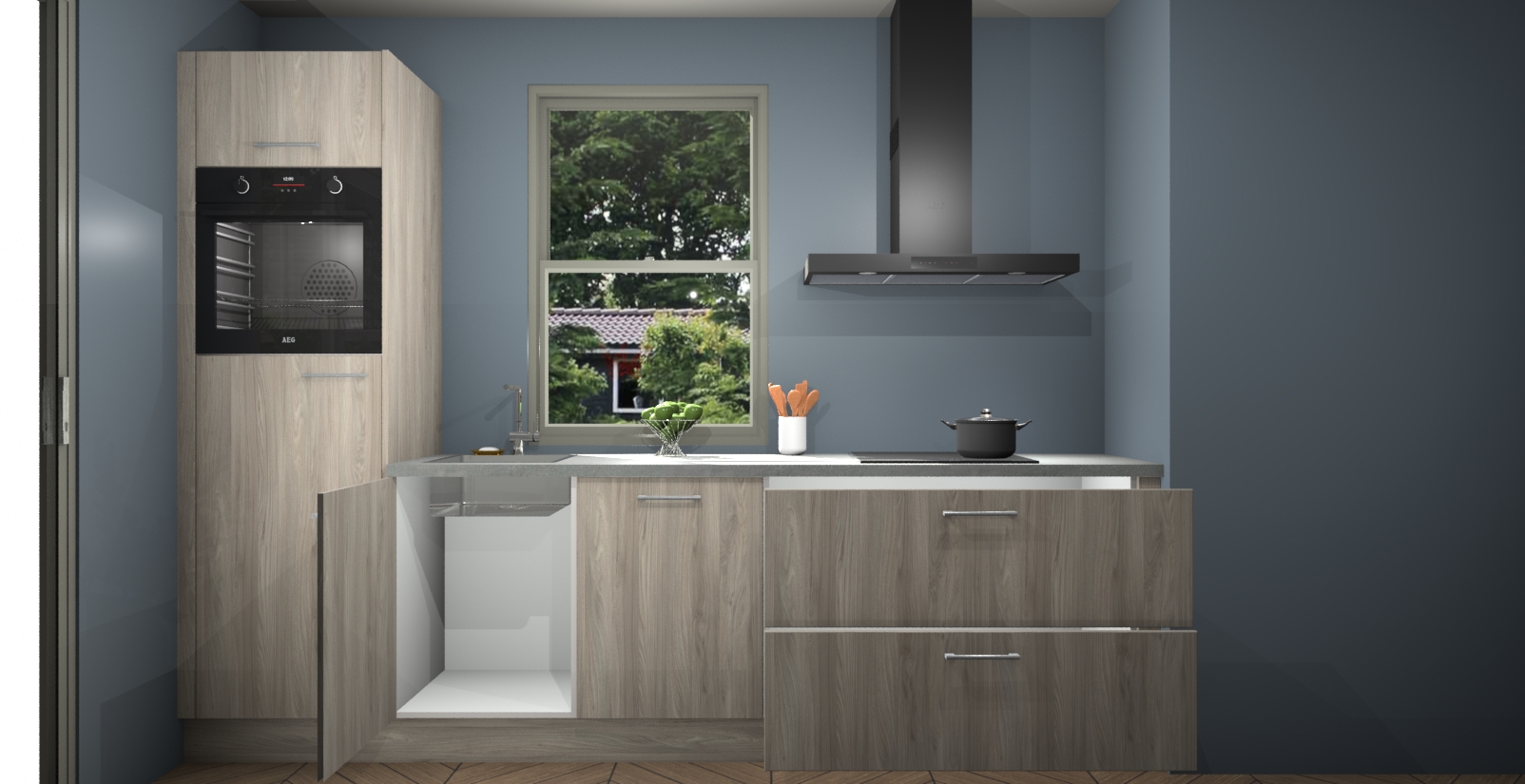 Inclusief plinten, stelpoten en werkblad