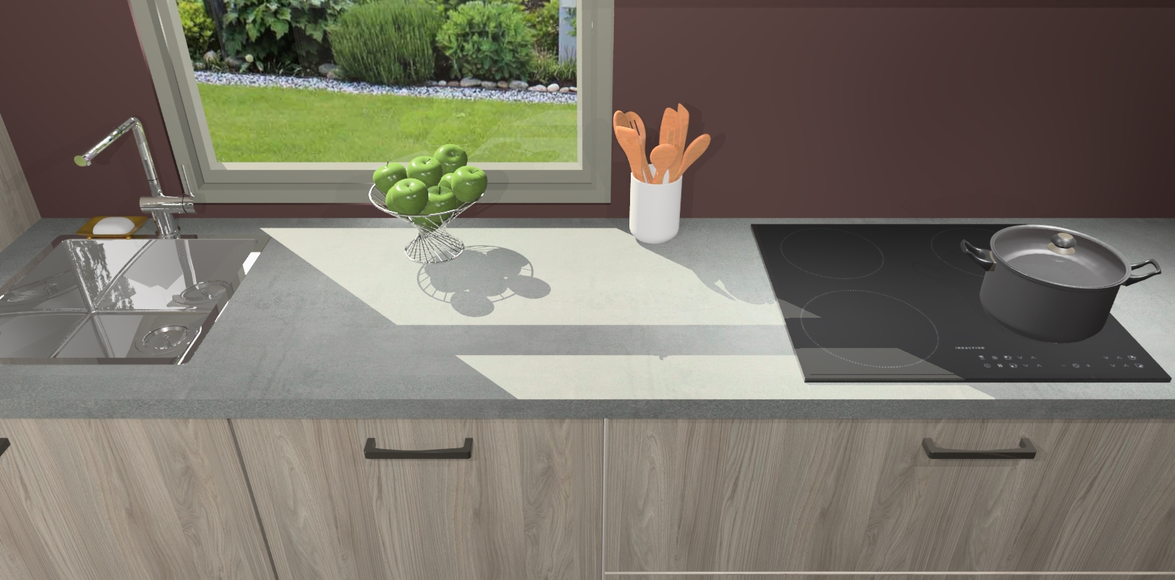 Een stijlvolle en praktische keuken als deze mag gezien worden. Dankzij de prachtige Olm afwerking wordt de keuken gemakkelijk het middelpunt van uw huis - hij ziet er geweldig uit onder allerlei lichtomstandigheden, van dag tot nacht!