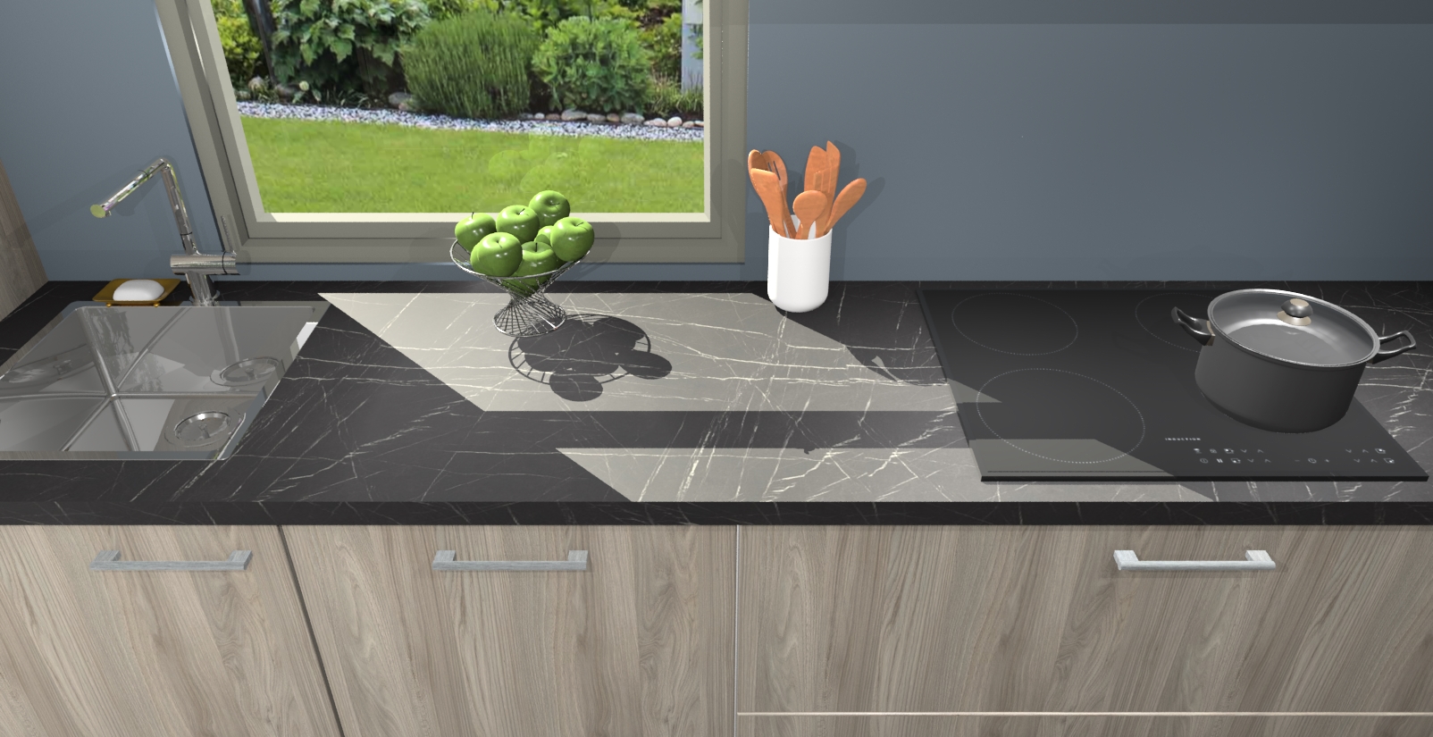 • Bij een hoekwerkblad zijn de hoeken in gevreesd en op maat gemaakt