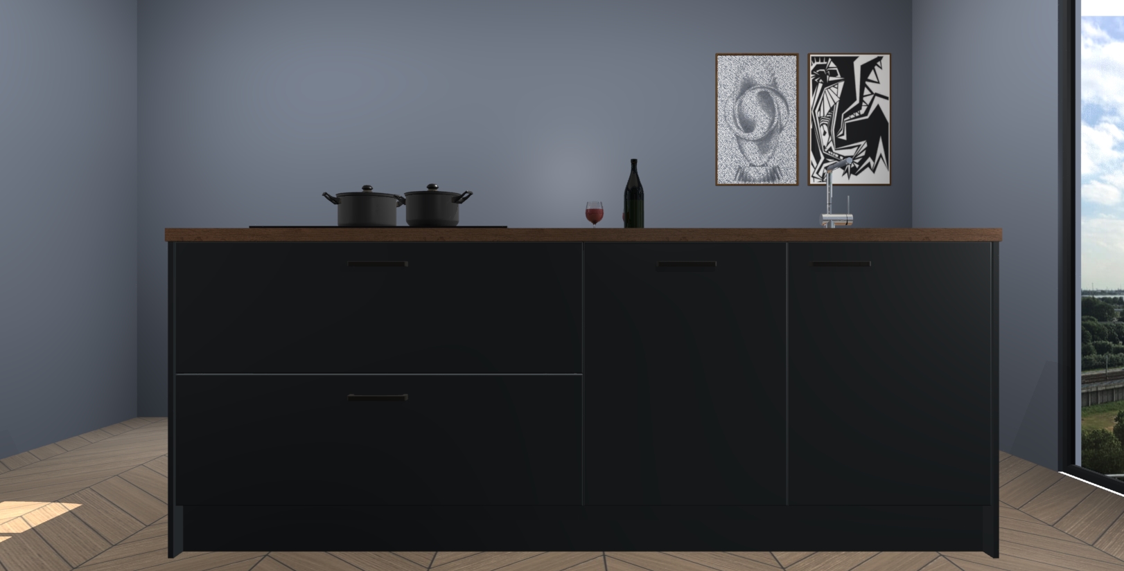 In deze box zijn alle kleuren verzameld van de deuren en werkbladen. Vraag de gratis kleurenbox aan en kijk thuis rustig verder!