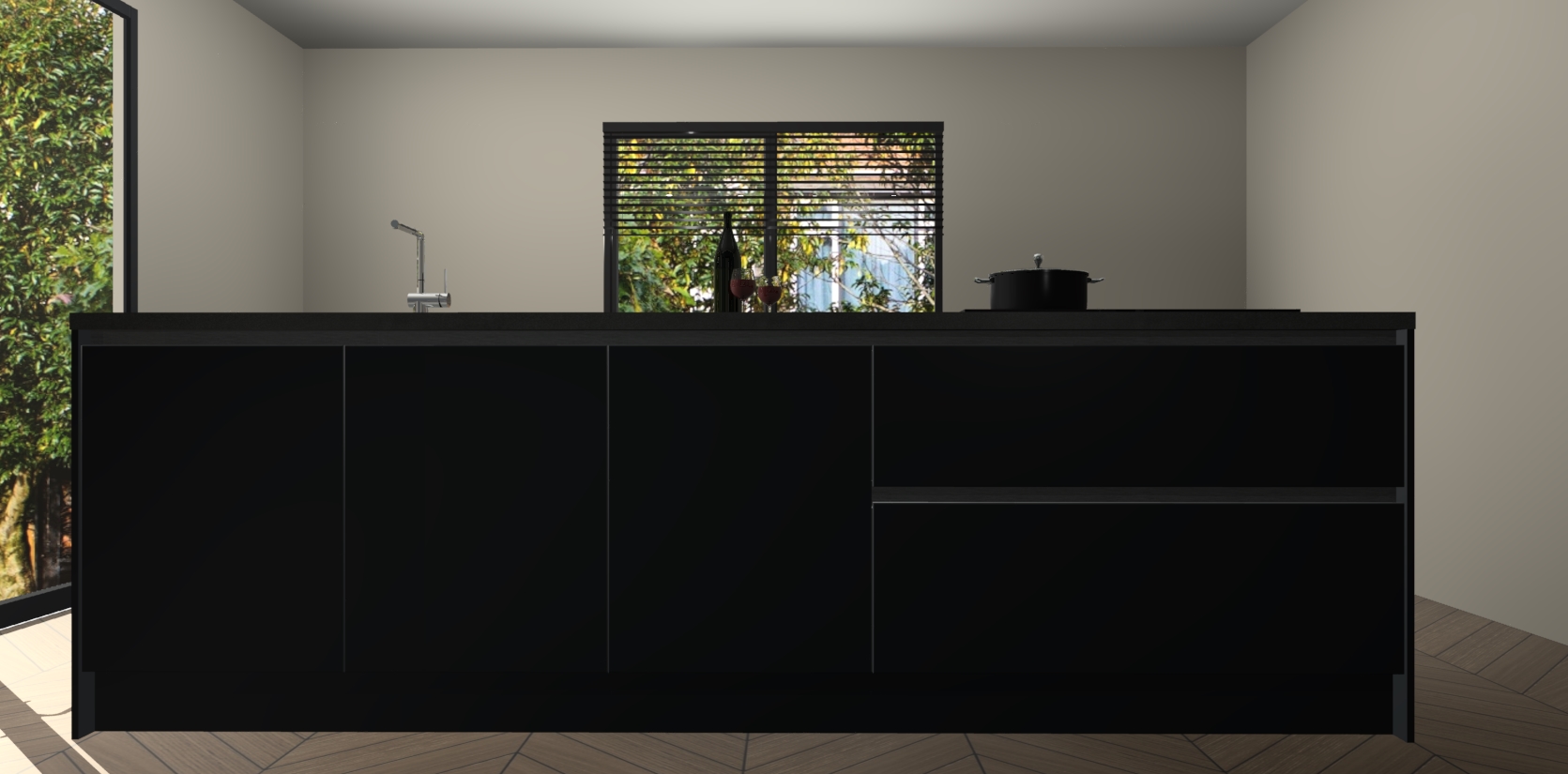 Inclusief plinten, stelpoten en werkblad