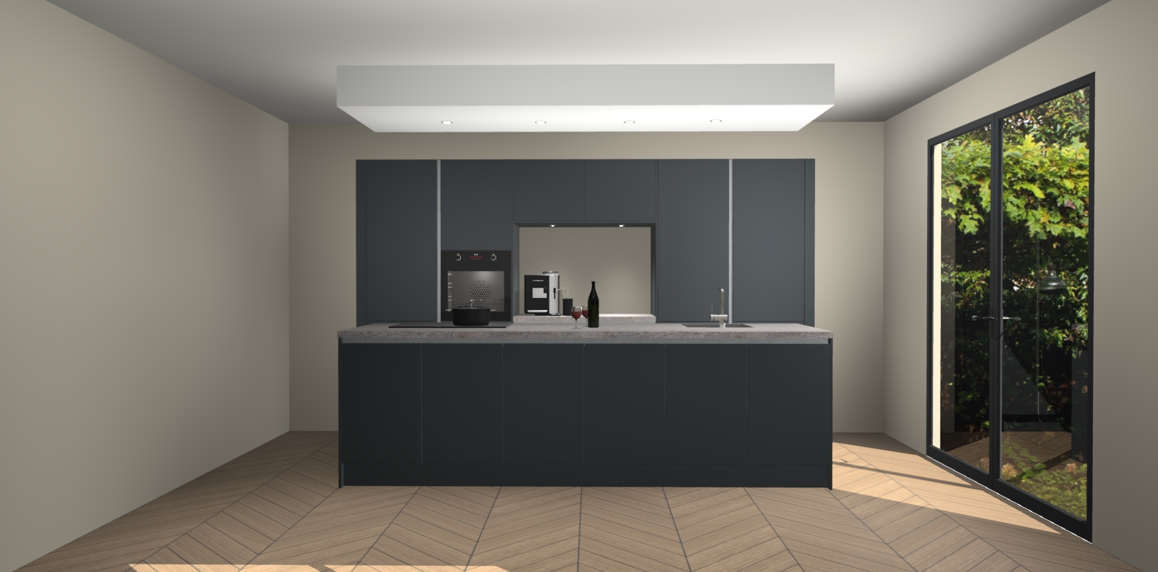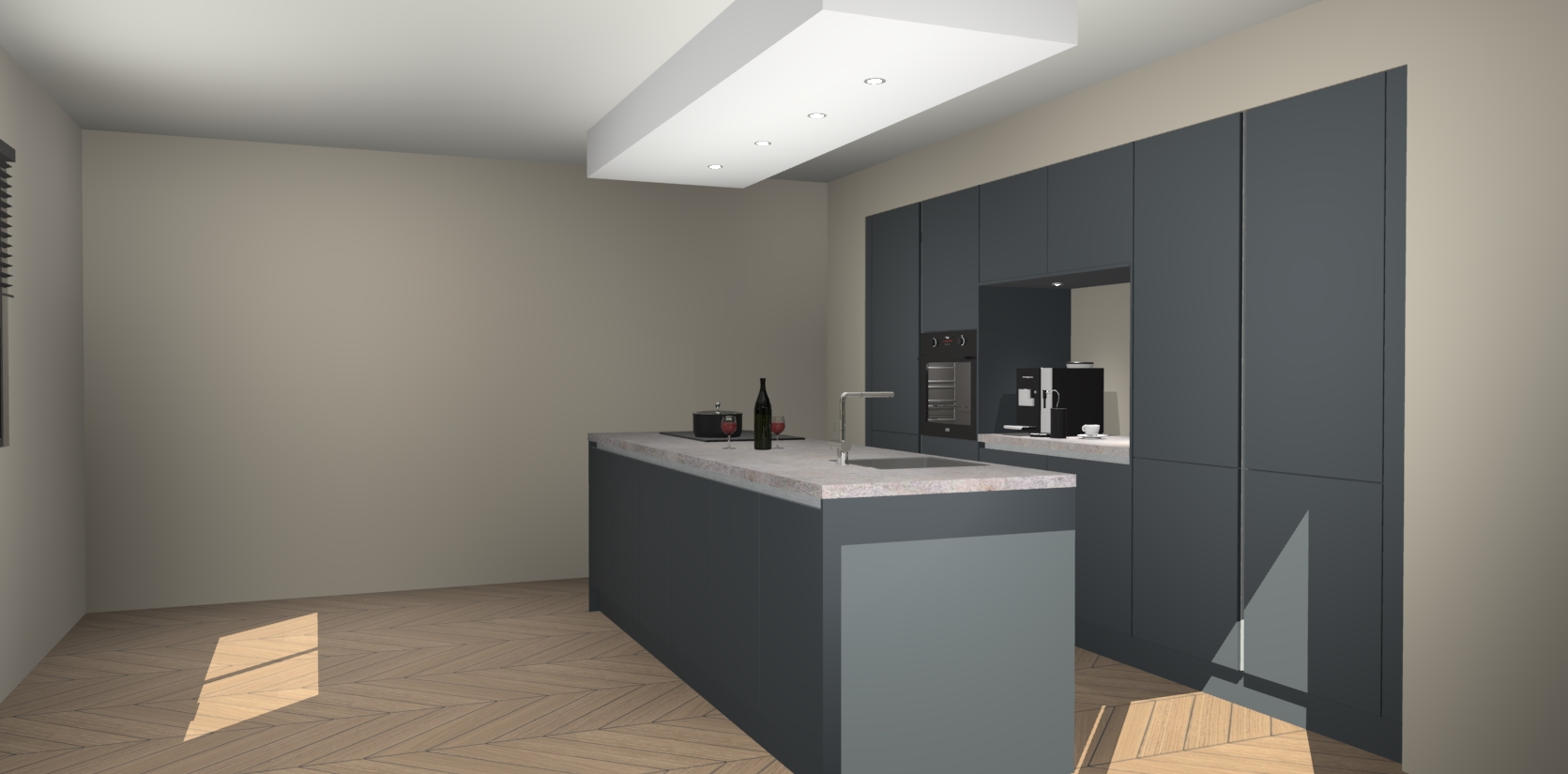 Sfeervol luxe met de Onyxgrijze greeploze keuken Lodz! Reken op een moderne look die met zijn schitterende Onyxgrijze  kleur en het prachtige keukeneiland echt zal schitteren in uw keuken. Met veel verschillende berging opties zult u alles kunnen opbergen wat u nodig heeft in deze hoopvolle ruimte, waaronder ook soft-close vergrendeling.