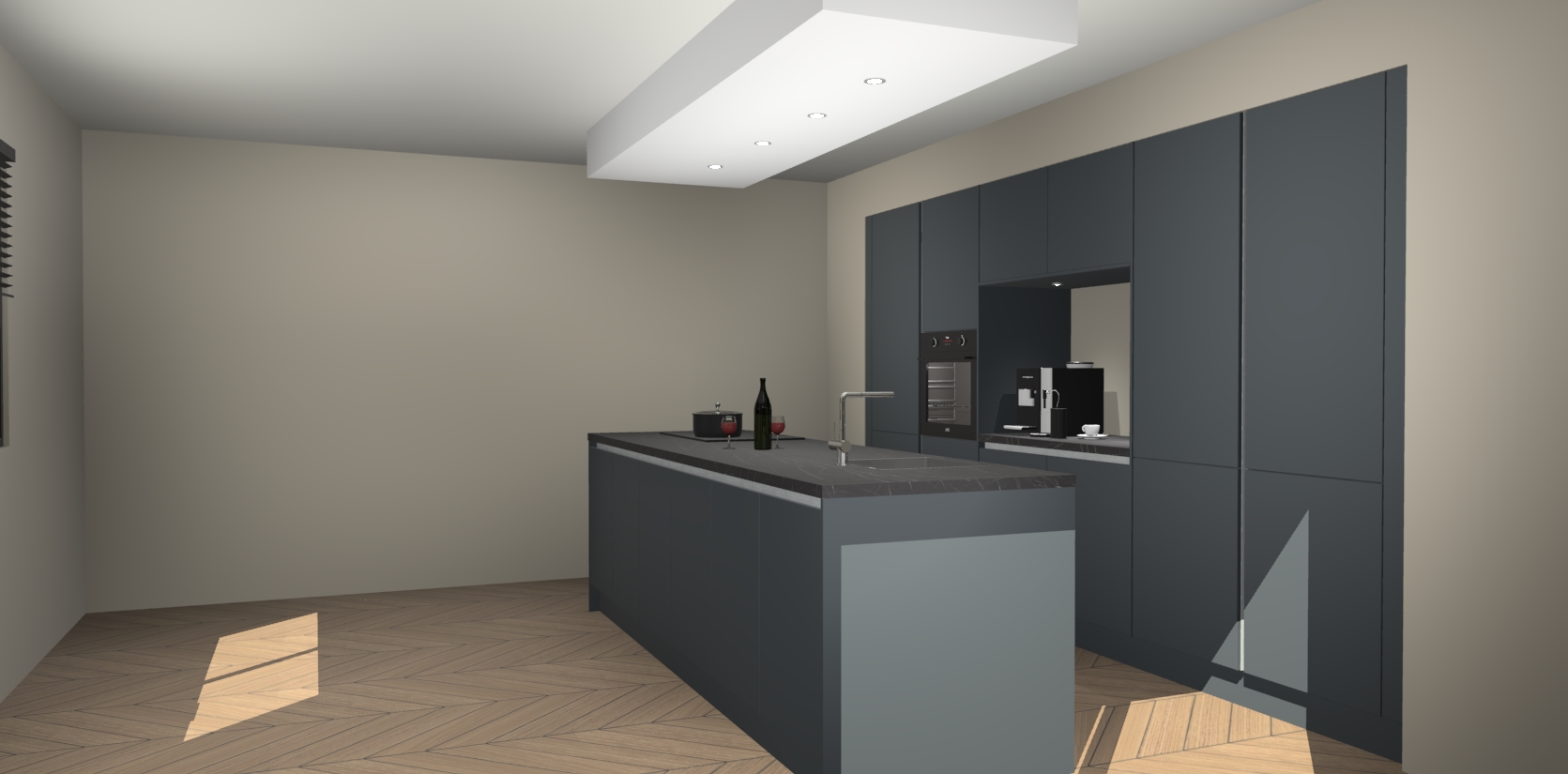 Sfeervol luxe met de Onyxgrijze greeploze keuken Lodz! Reken op een moderne look die met zijn schitterende Onyxgrijze  kleur en het prachtige keukeneiland echt zal schitteren in uw keuken. Met veel verschillende berging opties zult u alles kunnen opbergen wat u nodig heeft in deze hoopvolle ruimte, waaronder ook soft-close vergrendeling.