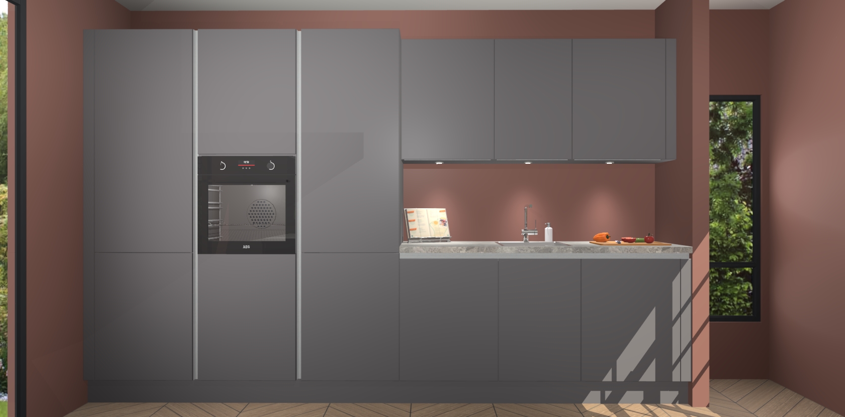 Maak kennis met de nieuwe Onyxgrijze greeploze keuken Straatsburg, dat gemaakt is voor de moderne huiseigenaar. Deze chique en eigentijdse keuken geeft uw huis een instant upgrade. Het Onyxgrijze greeploze ontwerp creëert de perfecte balans tussen elegantie en functionaliteit en geeft uw ruimte een strakke, uitnodigende sfeer. Het spoeleiland geeft ruime opbergruimte en met de soft-close deuren is deze keuken perfect voor elk huis.