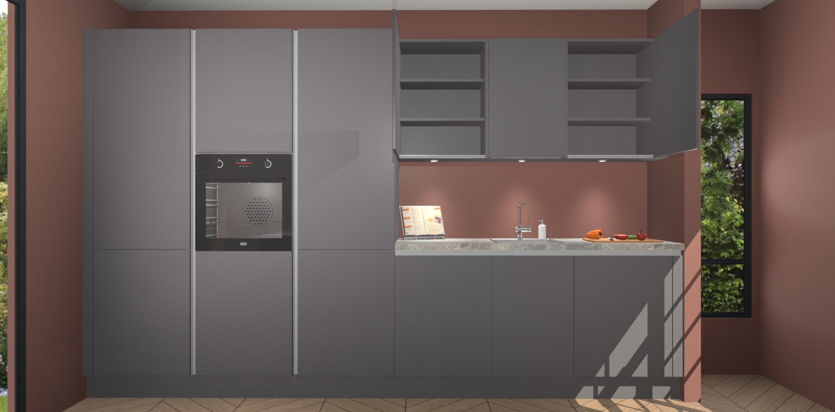De Onyxgrijze greeploze keuken Straatsburg wordt geleverd met een snelle levertijd van 7 weken, zodat u hem zo snel mogelijk kunt installeren. En omdat de kasten voorgemonteerd worden geleverd, is de installatie snel en eenvoudig - dat scheelt tijd en gedoe.