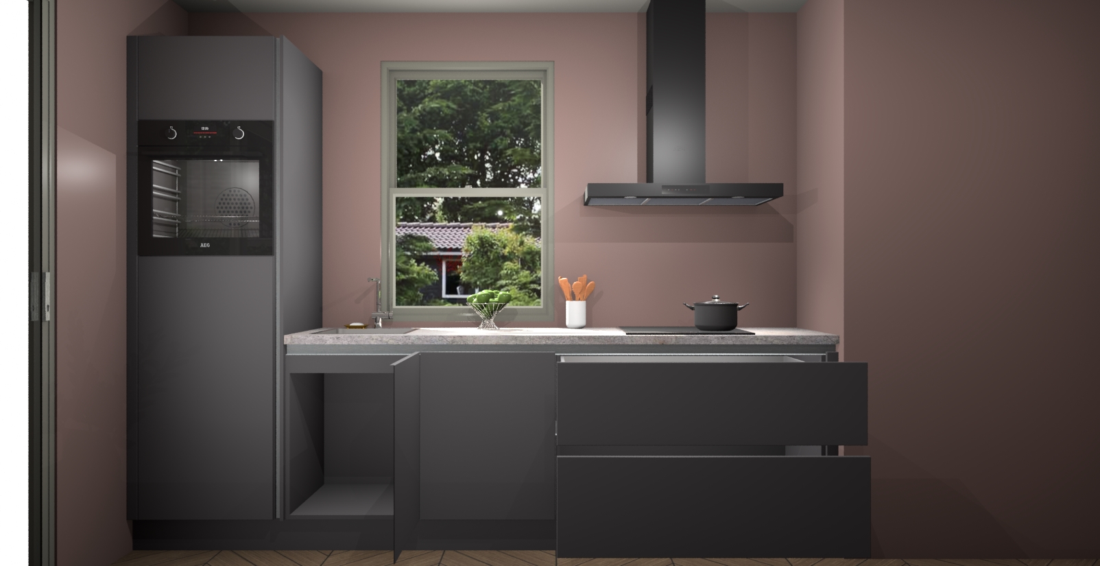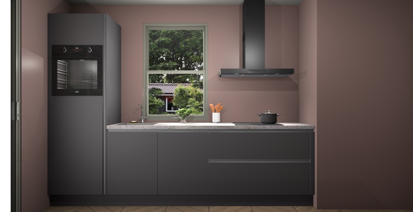 Een stijlvolle en praktische keuken als deze mag gezien worden. Dankzij de prachtige Onyxgrijze afwerking wordt de keuken gemakkelijk het middelpunt van uw huis - hij ziet er geweldig uit onder allerlei lichtomstandigheden, van dag tot nacht!
