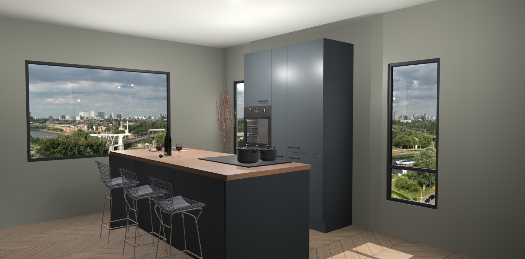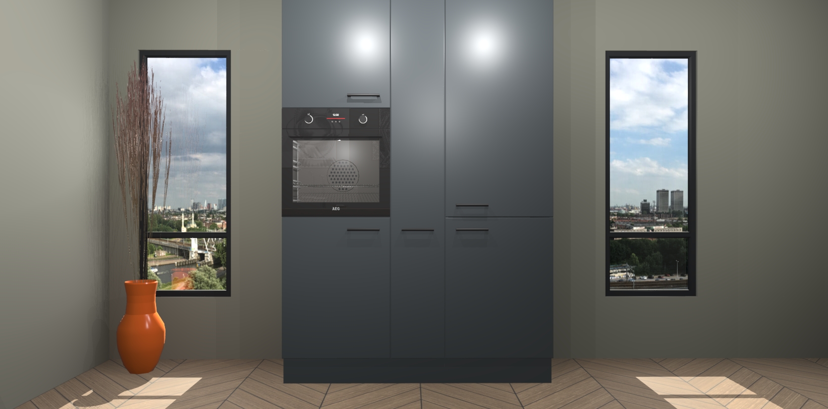 Vergeet ook het verbluffende kookeiland in het midden niet - het wordt vast en zeker uw favoriete onderdeel van de hele opstelling! Voor al uw opslag behoeften heeft onze onyxgrijze keuken Jeddah heel wat opties, met heel wat lades en kasten. Bovendien heeft elke kast soft-close deuren om stille functionaliteit te garanderen. Met dit geweldige model krijgt u 5 inbouwapparaten - een oven, inductiekookplaat, afzuigkap, vaatwasser en koelkast - allemaal inbegrepen voor een vaste lage prijs!