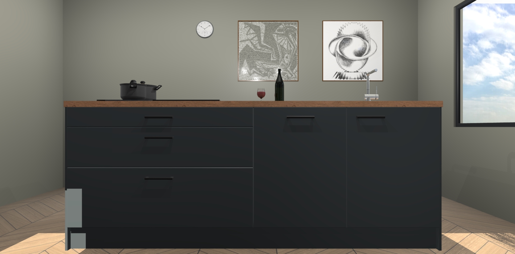 Inclusief plinten, stelpoten en werkblad
