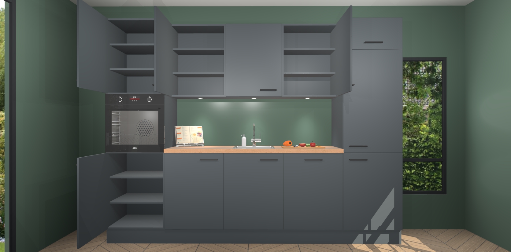 Voor het gemak zijn alle inbouwapparaten bij de aankoop inbegrepen: een oven, inductiekookplaat, afzuigkap, vaatwasser en koelkast horen er allemaal bij. En waarom zou u het uzelf niet nog makkelijker maken en deze ook efficiënt upgraden? En dan hebben we het nog niet eens gehad over alle extra opbergruimte binnenin, zodat u altijd georganiseerd en klaar bent om alles in elkaar te flansen, van grote maaltijden tot kleine hapjes als het etenstijd is. En vergeet niet dat dankzij onze soft close deuren ze elke keer dat u ze gebruikt fluisteren als ze dichtgaan!