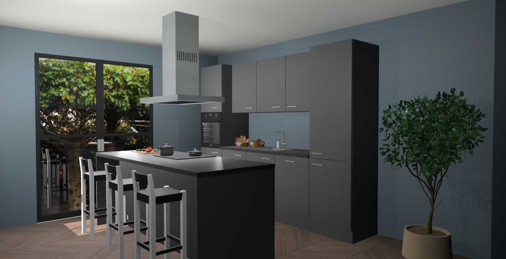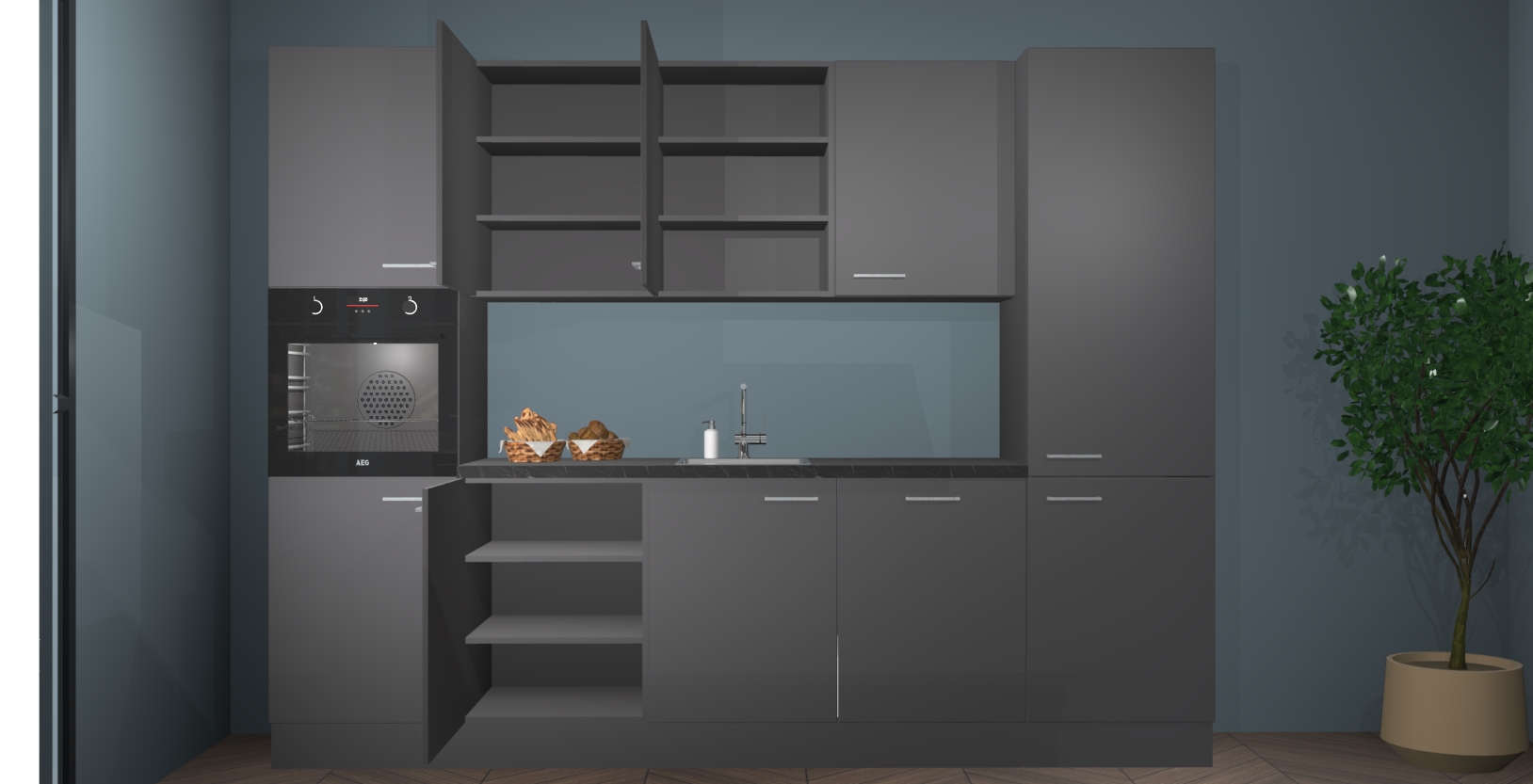 De rijke donkergrijze kleur voegt een vleugje klasse toe, terwijl de softclose deuren en ruime opbergruimte het nog handiger maken. Van het bereiden van maaltijden tot het gezellig samenzijn met familie en vrienden, deze keuken geeft elke gelegenheid een geraffineerde uitstraling. Het grote kookeiland is vooral ideaal voor wie meer werkbladruimte en extra opbergruimte wil.