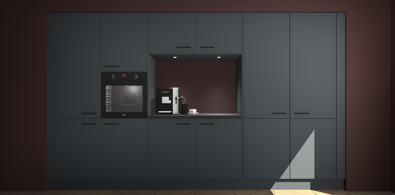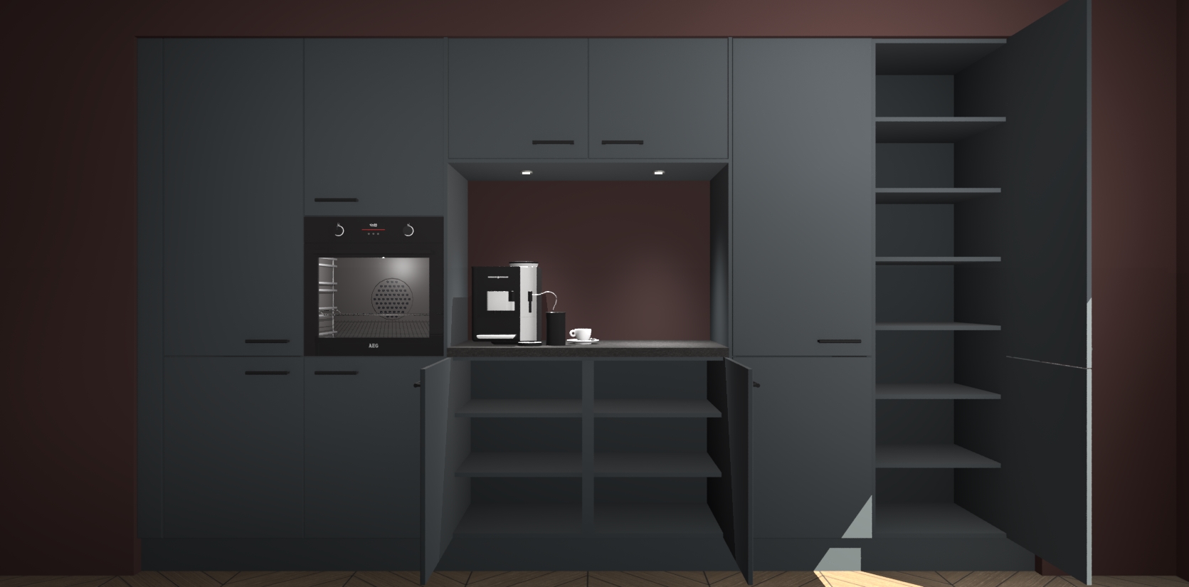 De Onyxgrijze keuken Lodz wordt geleverd met een set van 5 ingebouwde apparaten: Een oven, inductiekookplaat, afzuigkap, vaatwasser en koelkast. Deze kunnen gemakkelijk worden opgewaardeerd naar AEG. Met de gegarandeerde lage prijs en de snelle levering van 7 weken kan u er op rekenen dat de Onyxgrijze keuken Lodz zo snel mogelijk uw huis bereikt!