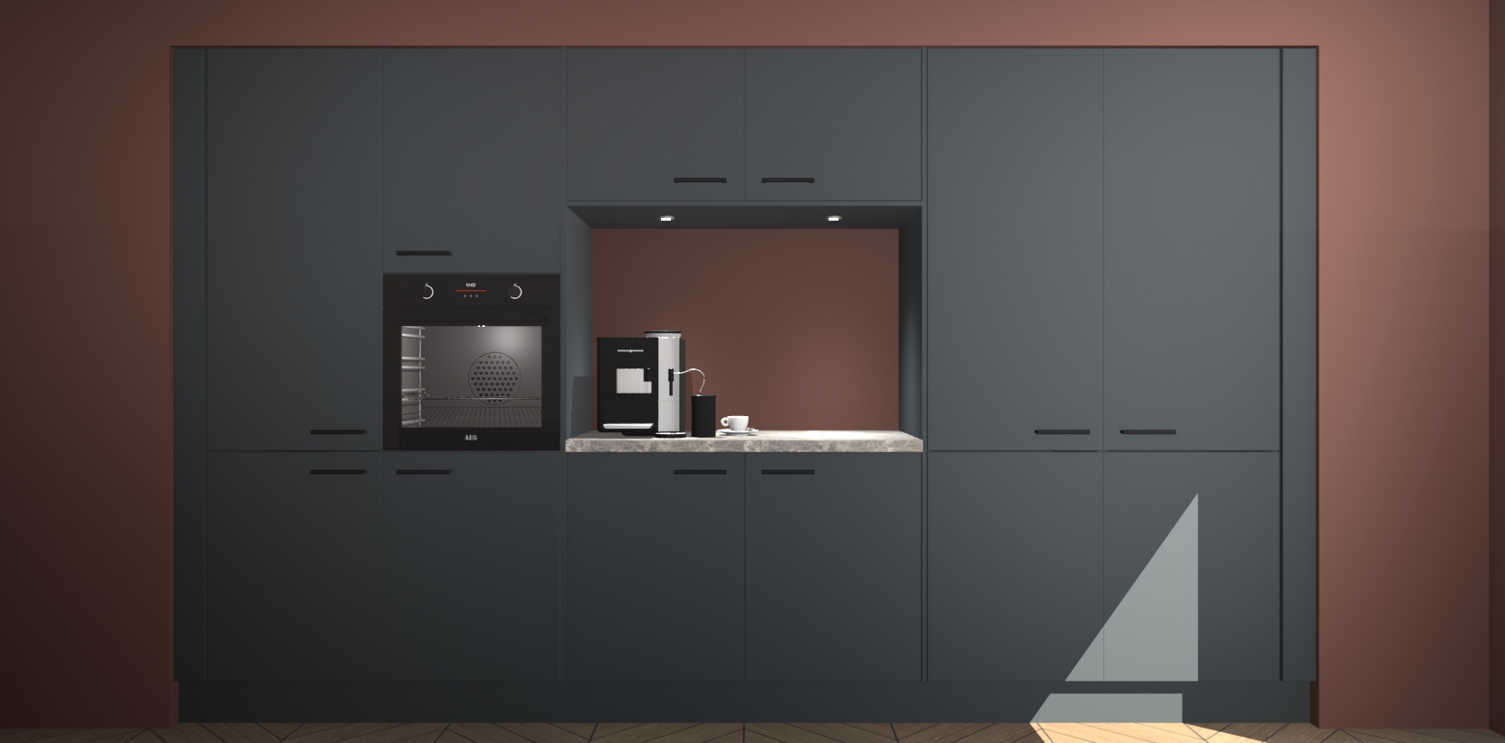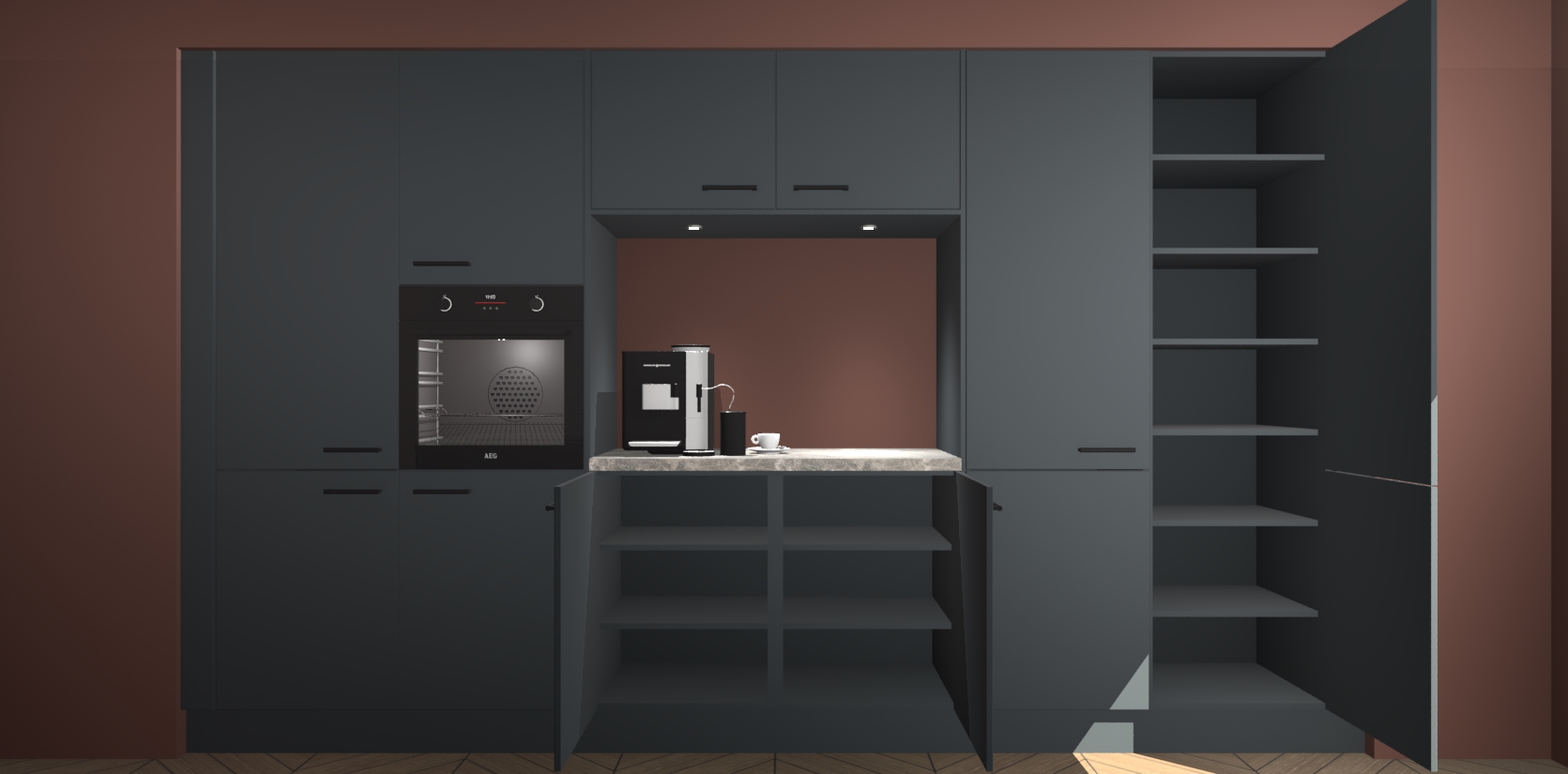 De Onyxgrijze keuken Lodz wordt geleverd met een set van 5 ingebouwde apparaten: Een oven, inductiekookplaat, afzuigkap, vaatwasser en koelkast. Deze kunnen gemakkelijk worden opgewaardeerd naar AEG. Met de gegarandeerde lage prijs en de snelle levering van 7 weken kan u er op rekenen dat de Onyxgrijze keuken Lodz zo snel mogelijk uw huis bereikt!