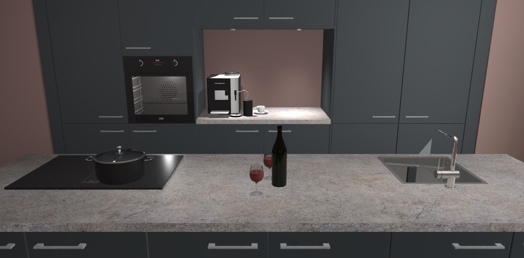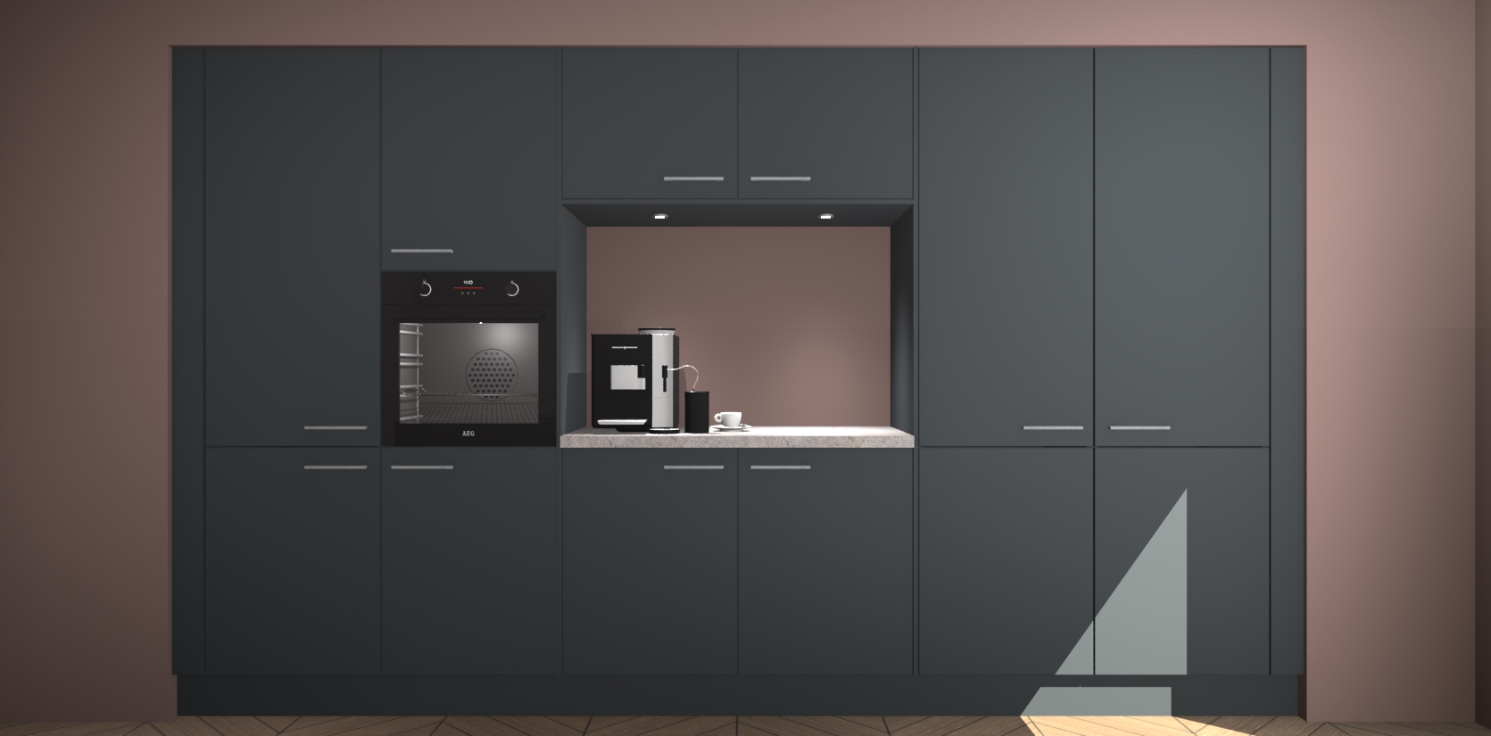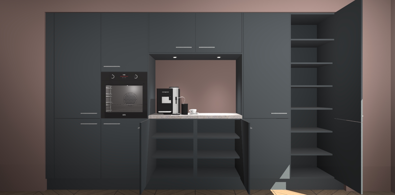 De Onyxgrijze keuken Lodz wordt geleverd met een set van 5 ingebouwde apparaten: Een oven, inductiekookplaat, afzuigkap, vaatwasser en koelkast. Deze kunnen gemakkelijk worden opgewaardeerd naar AEG. Met de gegarandeerde lage prijs en de snelle levering van 7 weken kan u er op rekenen dat de Onyxgrijze keuken Lodz zo snel mogelijk uw huis bereikt!