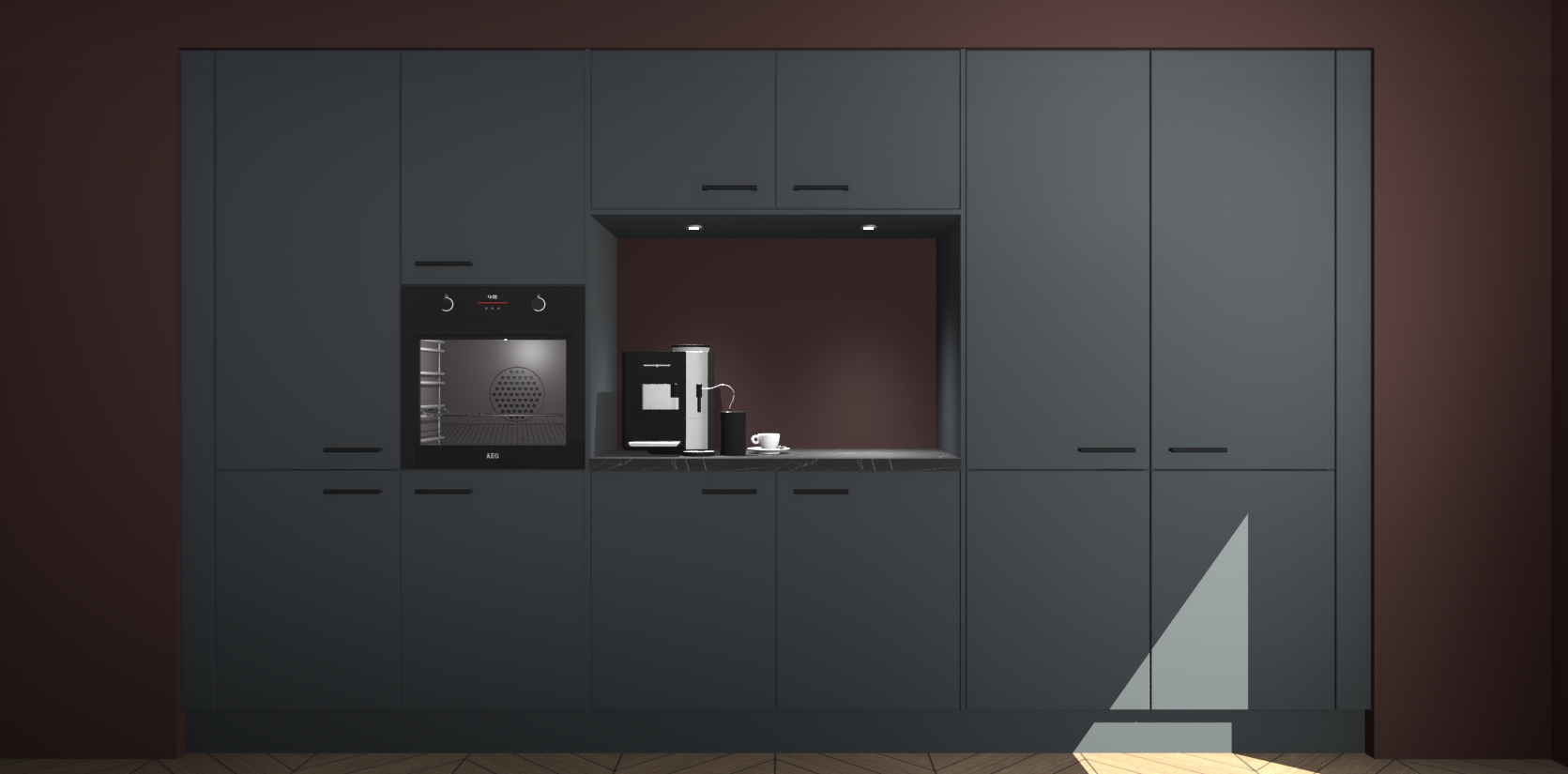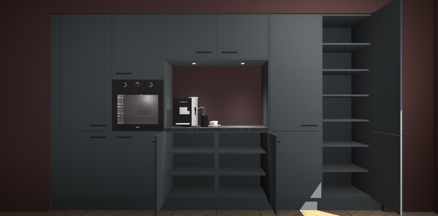 De Onyxgrijze keuken Lodz wordt geleverd met een set van 5 ingebouwde apparaten: Een oven, inductiekookplaat, afzuigkap, vaatwasser en koelkast. Deze kunnen gemakkelijk worden opgewaardeerd naar AEG. Met de gegarandeerde lage prijs en de snelle levering van 7 weken kan u er op rekenen dat de Onyxgrijze keuken Lodz zo snel mogelijk uw huis bereikt!