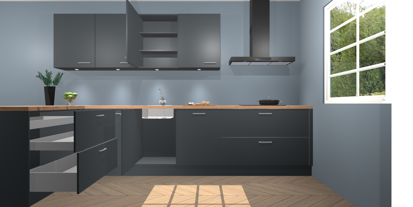 U kunt gerust zijn in de wetenschap dat u geen jaren hoeft te wachten om de keuken van uw dromen te krijgen; met de onyxgrijze keuken Sopot krijgt u maximale luxe voor minimale inspanningen. U hoeft alleen maar te kiezen voor deze verbluffend mooie onyxgrijze keuken!
