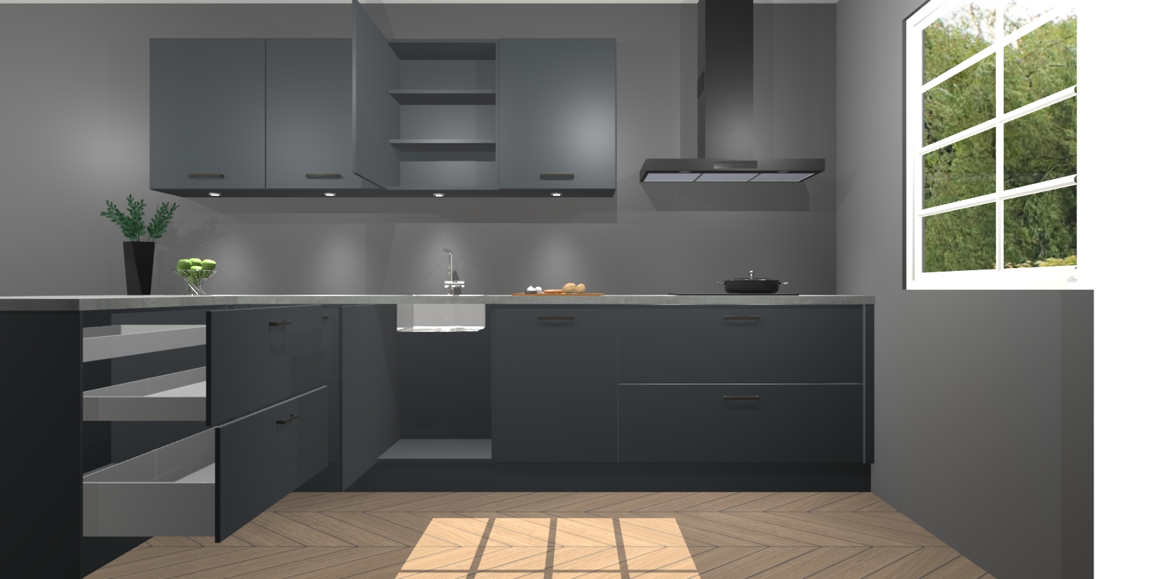 De perfecte toevoeging aan uw droomkeuken! De onyxgrijze keuken Sopot is een opmerkelijke en verfijnde keuken. Hij is ontworpen met moderne lijnen en tijdloze schoonheid die garant staan voor een luxe uitstraling. Deze uiterst functionele en mooie keuken heeft een reeks verbazingwekkende functies: de overvloedige opbergruimte bevat soft close deuren, terwijl vijf inbouwapparaten zijn inbegrepen in de vaste lage prijs. Beter nog, uw onyxgrijze keuken Sopot bestellen duurt slechts 7 weken met levering van voorgemonteerde kasten.