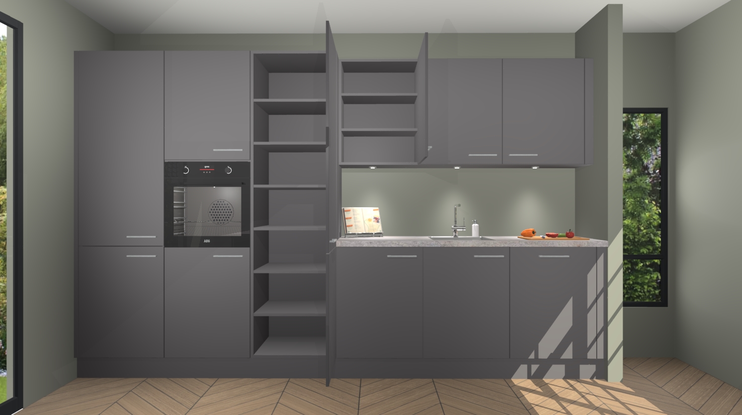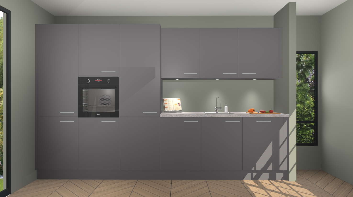 Maak kennis met de nieuwe Onyxgrijze keuken Straatsburg, dat gemaakt is voor de moderne huiseigenaar. Deze chique en eigentijdse keuken geeft uw huis een instant upgrade. Het Onyxgrijze ontwerp creëert de perfecte balans tussen elegantie en functionaliteit en geeft uw ruimte een strakke, uitnodigende sfeer. Het spoeleiland geeft ruime opbergruimte en met de soft-close deuren is deze keuken perfect voor elk huis.