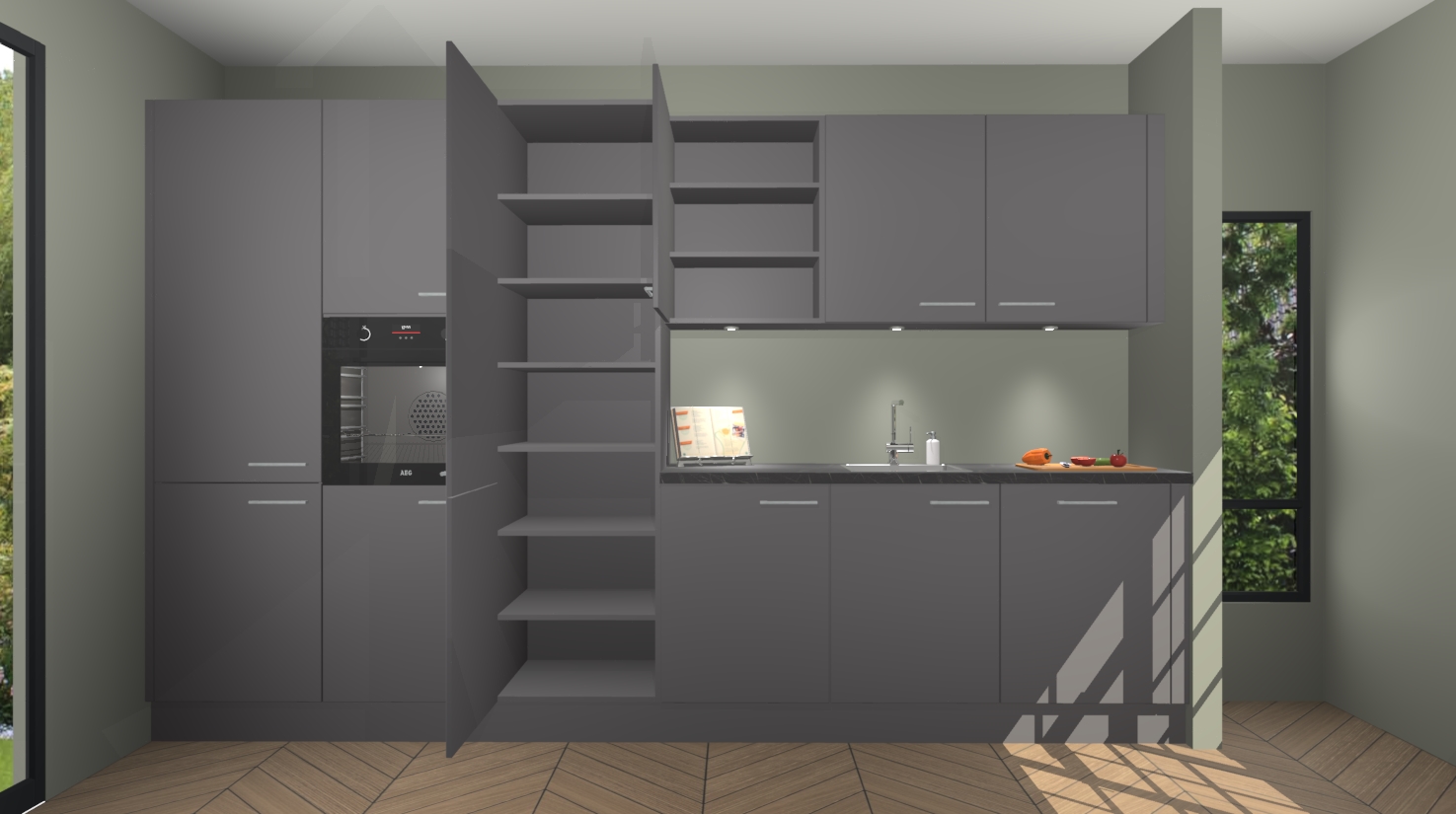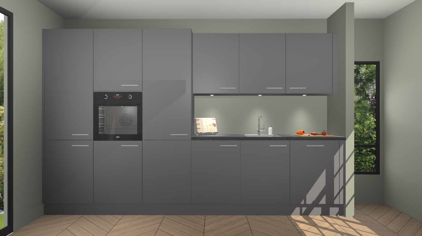 Maak kennis met de nieuwe Onyxgrijze keuken Straatsburg, dat gemaakt is voor de moderne huiseigenaar. Deze chique en eigentijdse keuken geeft uw huis een instant upgrade. Het Onyxgrijze ontwerp creëert de perfecte balans tussen elegantie en functionaliteit en geeft uw ruimte een strakke, uitnodigende sfeer. Het spoeleiland geeft ruime opbergruimte en met de soft-close deuren is deze keuken perfect voor elk huis.