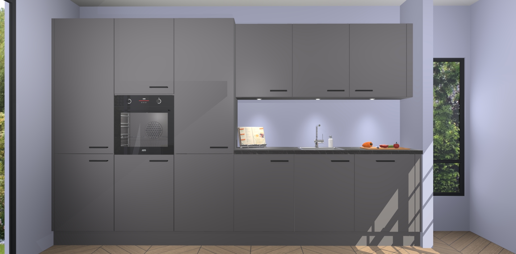 Maak kennis met de nieuwe Onyxgrijze keuken Straatsburg, dat gemaakt is voor de moderne huiseigenaar. Deze chique en eigentijdse keuken geeft uw huis een instant upgrade. Het Onyxgrijze ontwerp creëert de perfecte balans tussen elegantie en functionaliteit en geeft uw ruimte een strakke, uitnodigende sfeer. Het spoeleiland geeft ruime opbergruimte en met de soft-close deuren is deze keuken perfect voor elk huis.