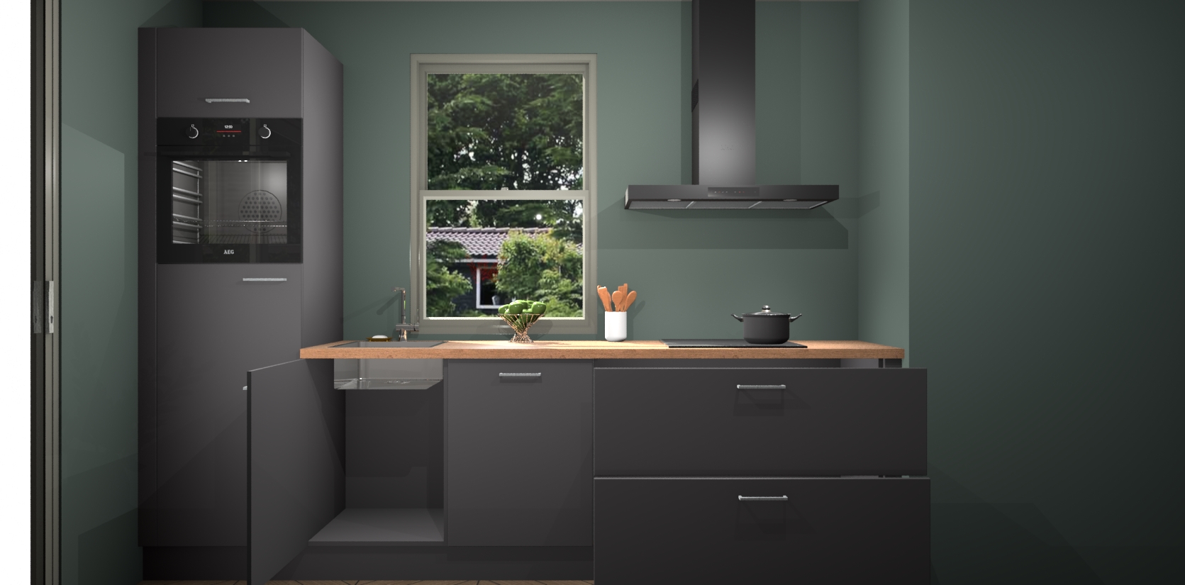 Dankzij de afwerking past de Onyxgrijze keuken naadloos in elk huis of appartement. De soft-close deuren geven je extra gemoedsrust, want ze sluiten vanzelf en slaan nooit dicht! En alsof dat nog niet genoeg is, worden deze kasten volledig gemonteerd geleverd, dus maak je geen zorgen over eventuele installatieproblemen.