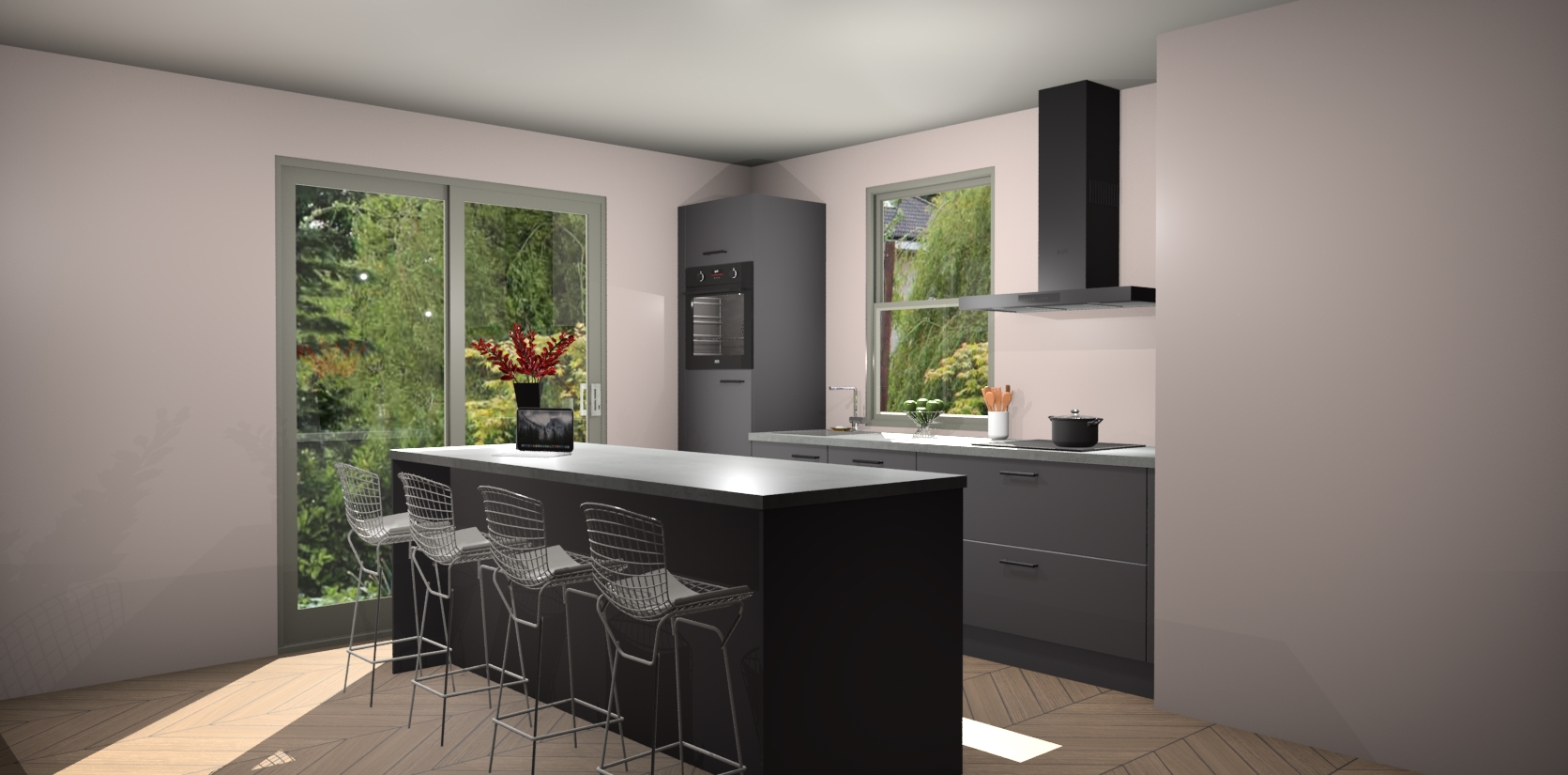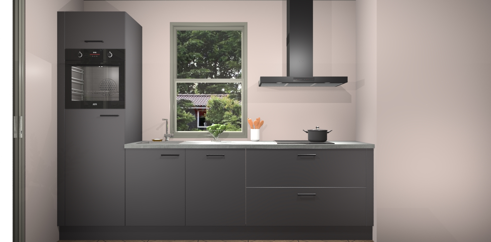 Een stijlvolle en praktische keuken als deze mag gezien worden. Dankzij de prachtige Onyxgrijze afwerking wordt de keuken gemakkelijk het middelpunt van uw huis - hij ziet er geweldig uit onder allerlei lichtomstandigheden, van dag tot nacht!