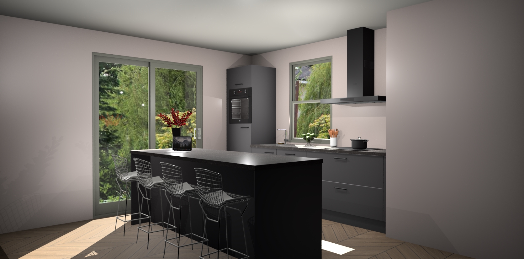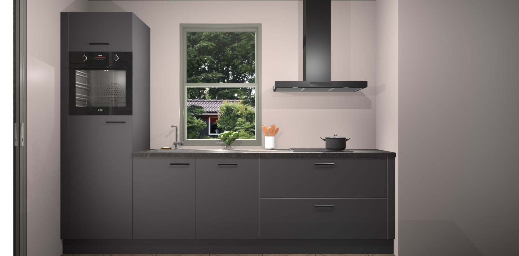 Een stijlvolle en praktische keuken als deze mag gezien worden. Dankzij de prachtige Onyxgrijze afwerking wordt de keuken gemakkelijk het middelpunt van uw huis - hij ziet er geweldig uit onder allerlei lichtomstandigheden, van dag tot nacht!