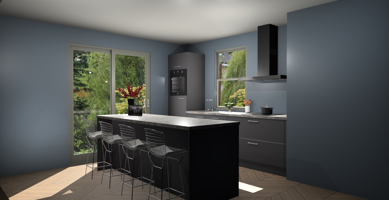 Een stijlvolle en praktische keuken als deze mag gezien worden. Dankzij de prachtige Onyxgrijze afwerking wordt de keuken gemakkelijk het middelpunt van uw huis - hij ziet er geweldig uit onder allerlei lichtomstandigheden, van dag tot nacht!