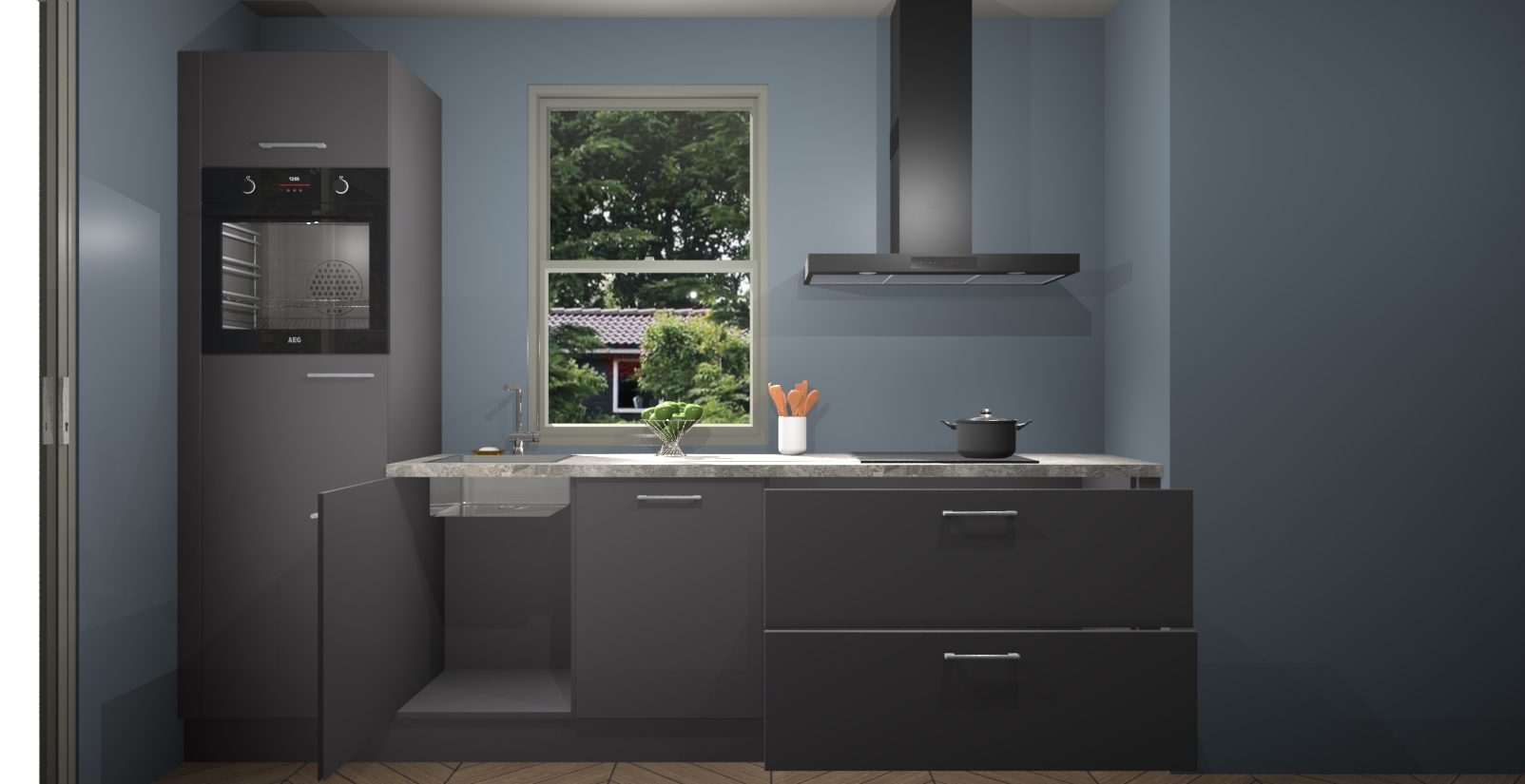Dankzij de afwerking past de Onyxgrijze keuken Toulouse naadloos in elk huis of appartement. De soft-close deuren geven je extra gemoedsrust, want ze sluiten vanzelf en slaan nooit dicht! En alsof dat nog niet genoeg is, worden deze kasten volledig gemonteerd geleverd, dus maak je geen zorgen over eventuele installatieproblemen.