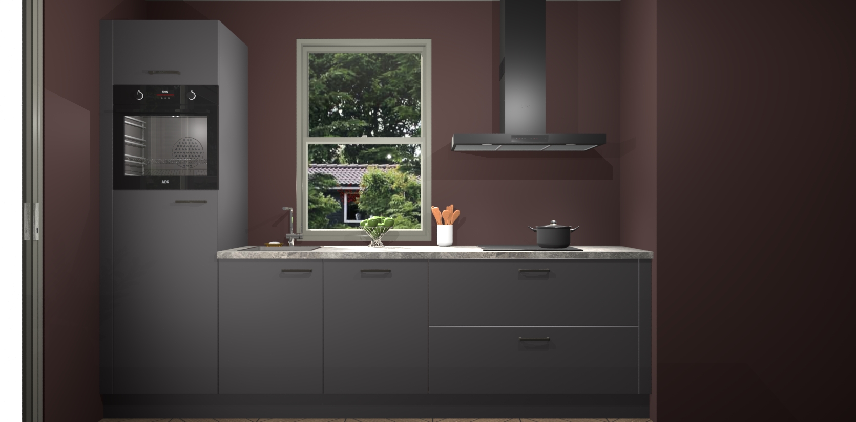Een stijlvolle en praktische keuken als deze mag gezien worden. Dankzij de prachtige Onyxgrijze afwerking wordt de keuken gemakkelijk het middelpunt van uw huis - hij ziet er geweldig uit onder allerlei lichtomstandigheden, van dag tot nacht!