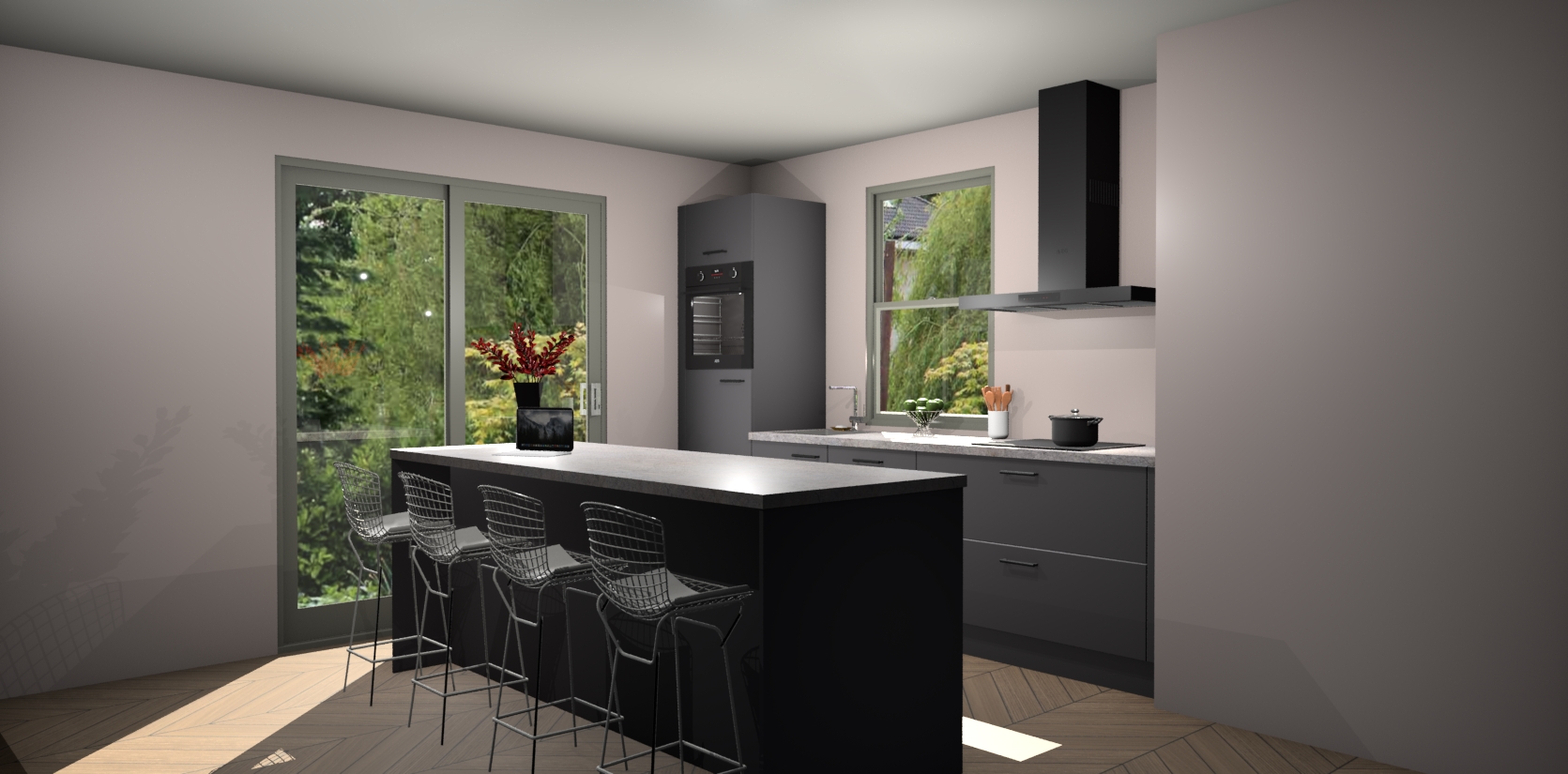 Een stijlvolle en praktische keuken als deze mag gezien worden. Dankzij de prachtige Onyxgrijze afwerking wordt de keuken gemakkelijk het middelpunt van uw huis - hij ziet er geweldig uit onder allerlei lichtomstandigheden, van dag tot nacht!