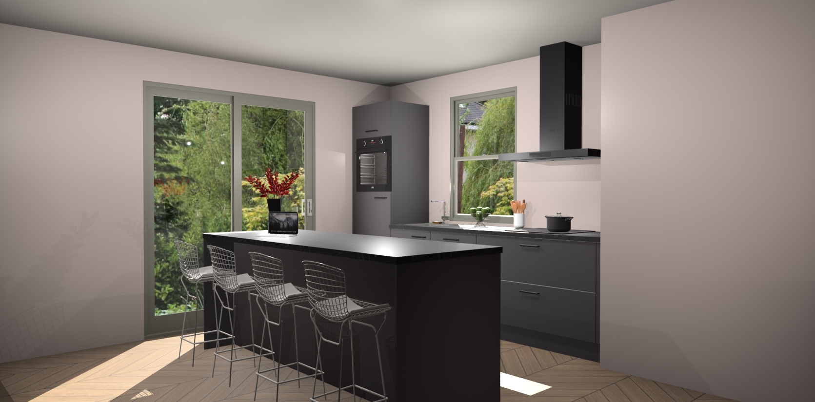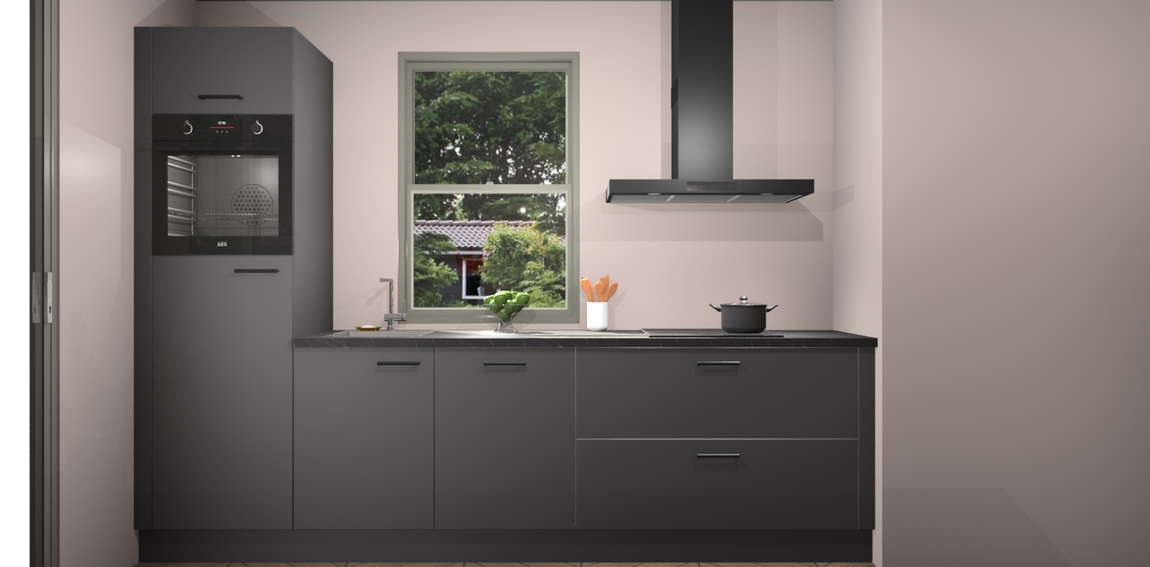 Een stijlvolle en praktische keuken als deze mag gezien worden. Dankzij de prachtige Onyxgrijze afwerking wordt de keuken gemakkelijk het middelpunt van uw huis - hij ziet er geweldig uit onder allerlei lichtomstandigheden, van dag tot nacht!