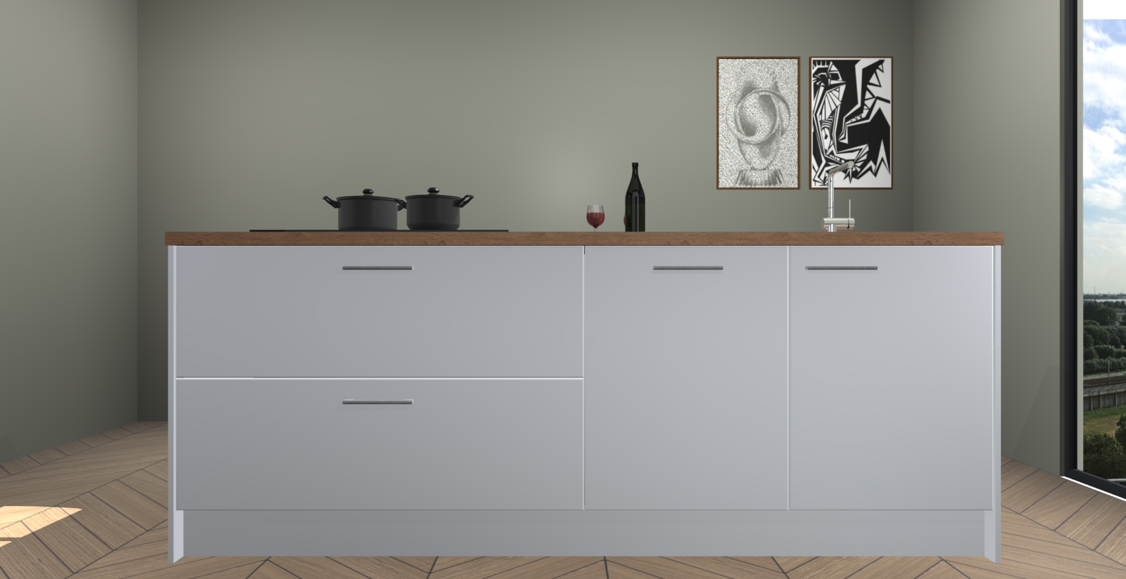 Inclusief plinten, stelpoten en werkblad