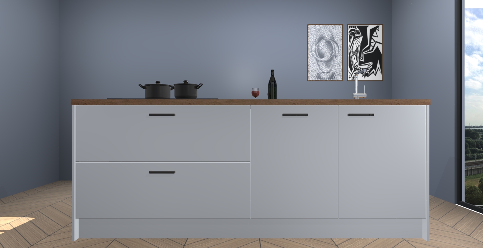 Inclusief plinten, stelpoten en werkblad