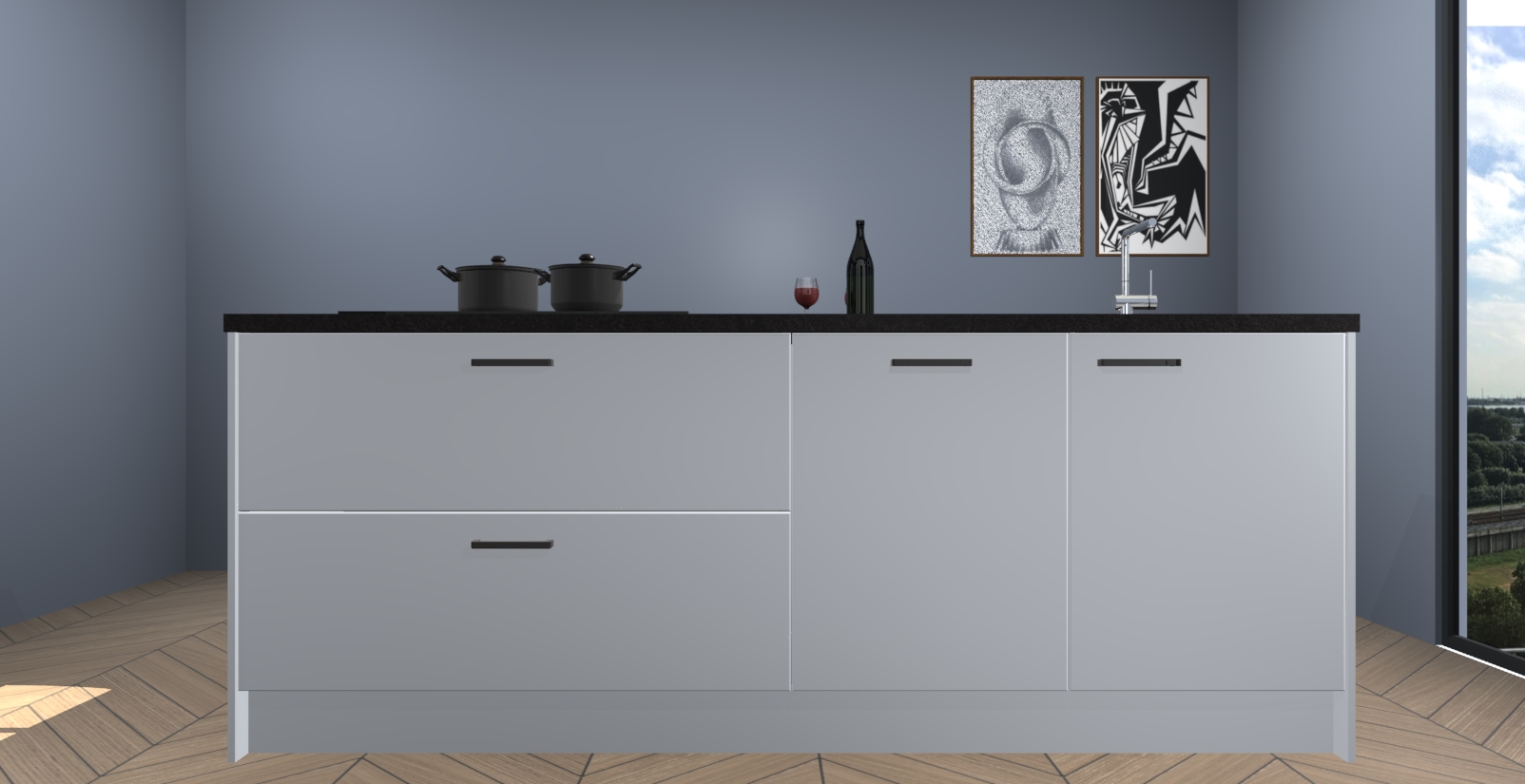 Inclusief plinten, stelpoten en werkblad
