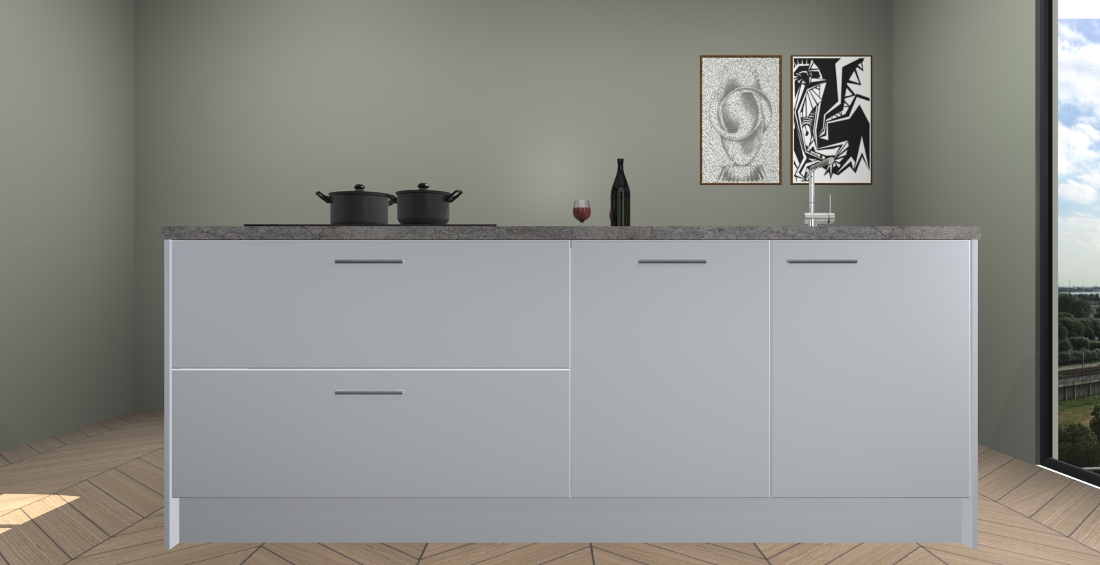 Inclusief plinten, stelpoten en werkblad