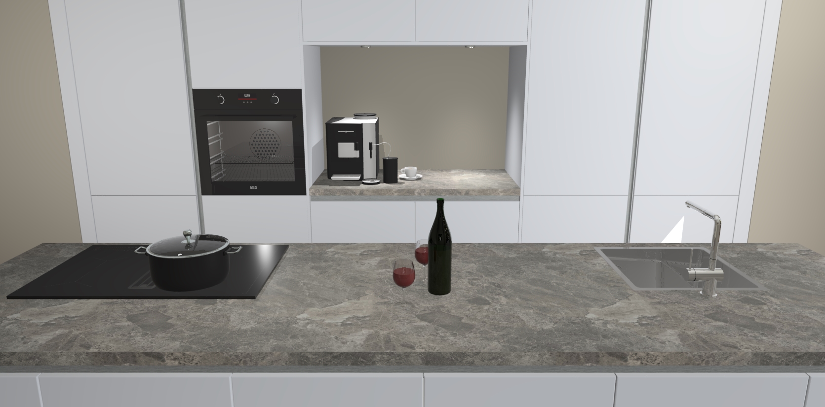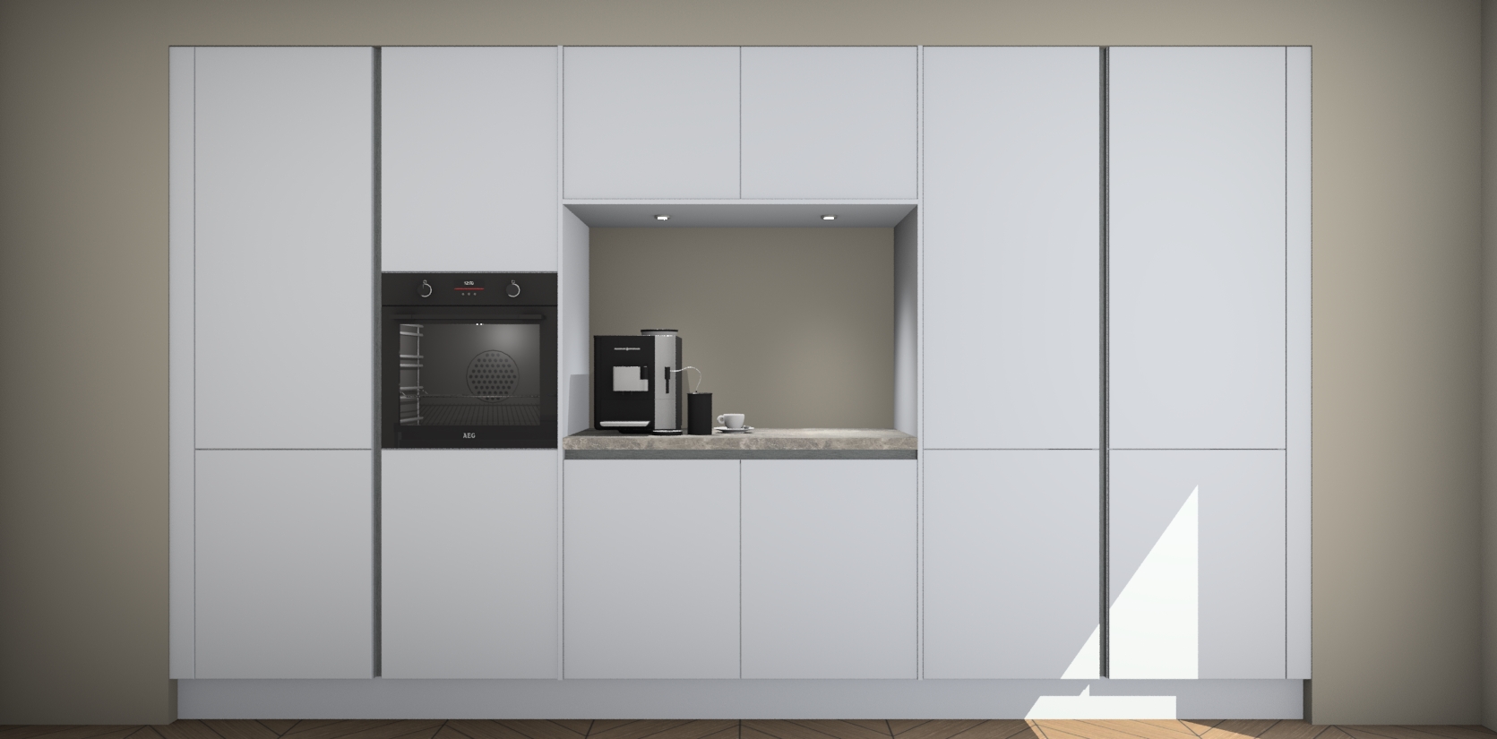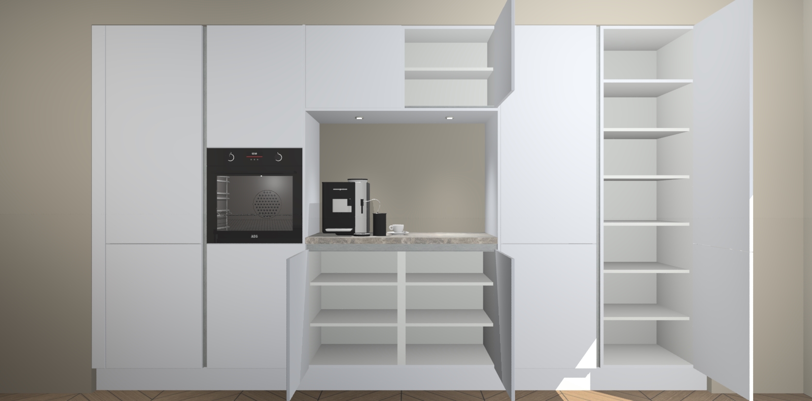 De sneeuwwitte greeploze keuken Lodz wordt geleverd met een set van 5 ingebouwde apparaten: Een oven, inductiekookplaat, afzuigkap, vaatwasser en koelkast. Deze kunnen gemakkelijk worden opgewaardeerd naar AEG. Met de gegarandeerde lage prijs en de snelle levering van 7 weken kan u er op rekenen dat de sneeuwwitte greeploze keuken Lodz zo snel mogelijk uw huis bereikt!