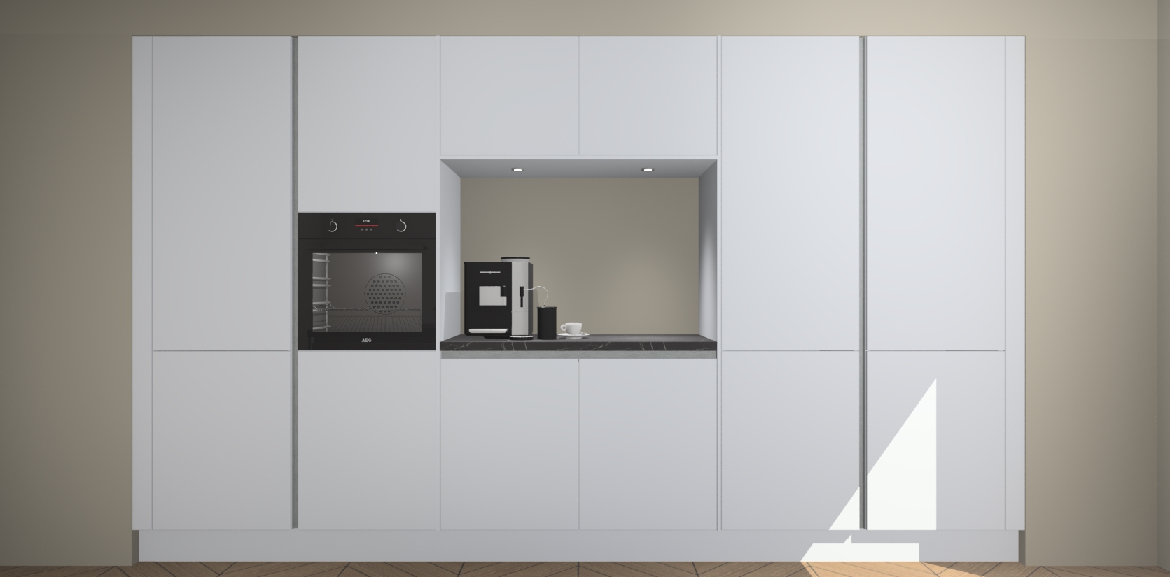 De sneeuwwitte greeploze keuken Lodz wordt geleverd met een set van 5 ingebouwde apparaten: Een oven, inductiekookplaat, afzuigkap, vaatwasser en koelkast. Deze kunnen gemakkelijk worden opgewaardeerd naar AEG. Met de gegarandeerde lage prijs en de snelle levering van 7 weken kan u er op rekenen dat de sneeuwwitte greeploze keuken Lodz zo snel mogelijk uw huis bereikt!