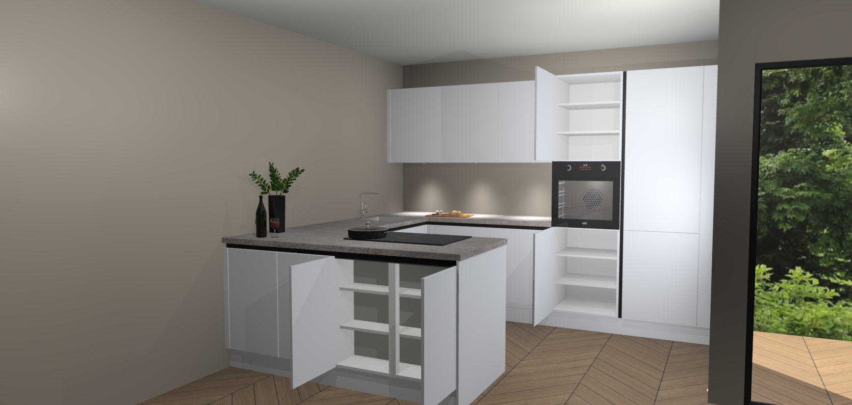 Inclusief plinten, stelpoten en werkblad