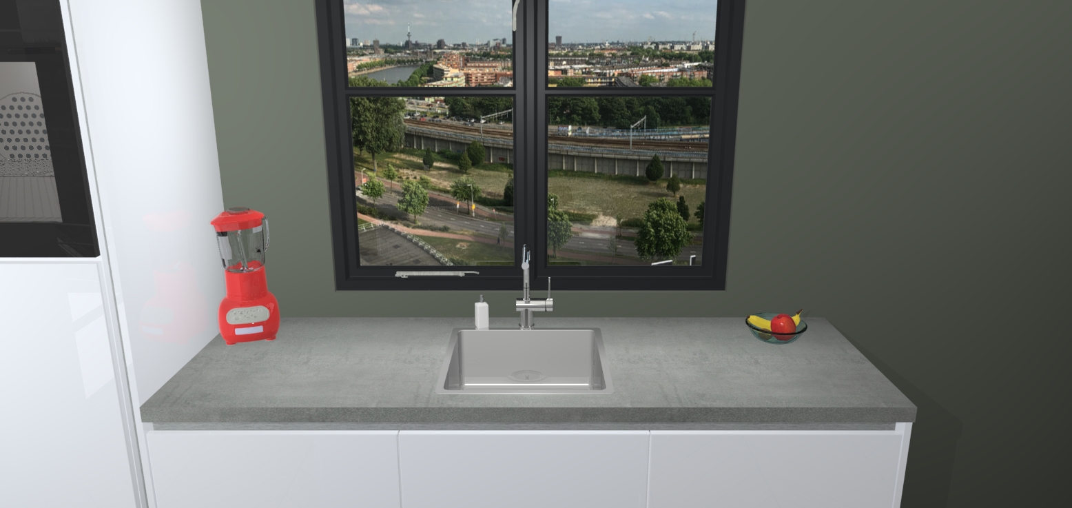 - De spoelbak is nog niet in gevreesd. Dit dient tijdens het werk gedaan te worden