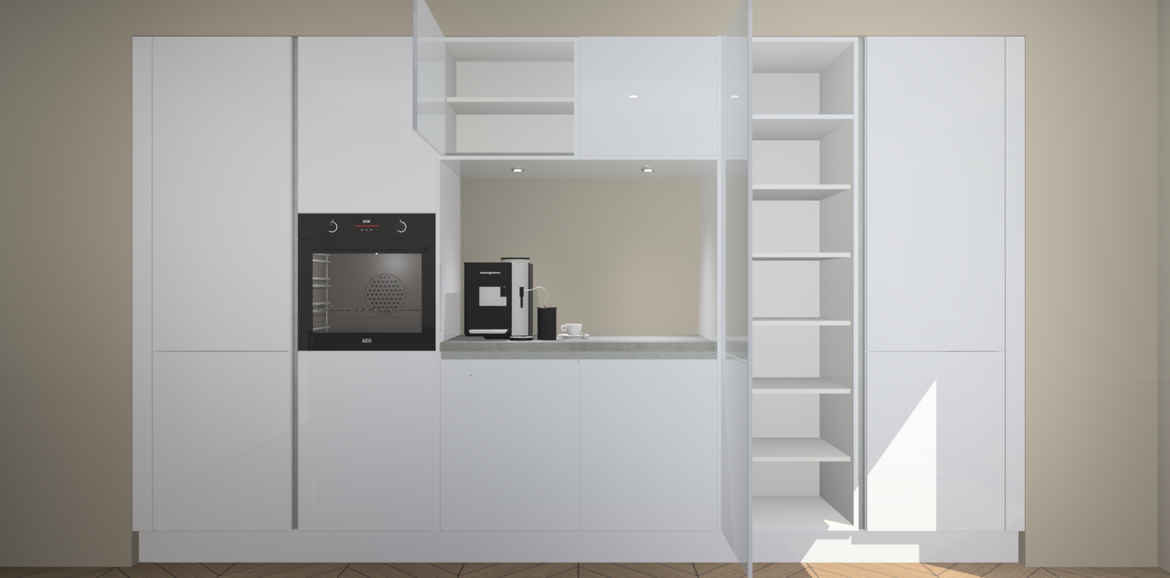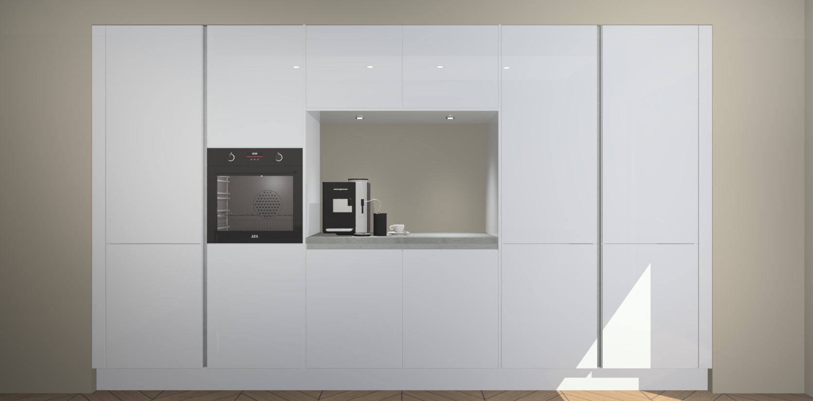 De sneeuwwitte hoogglans greeploze keuken Lodz wordt geleverd met een set van 5 ingebouwde apparaten: Een oven, inductiekookplaat, afzuigkap, vaatwasser en koelkast. Deze kunnen gemakkelijk worden opgewaardeerd naar AEG. Met de gegarandeerde lage prijs en de snelle levering van 7 weken kan u er op rekenen dat de sneeuwwitte hoogglans greeploze keuken Lodz zo snel mogelijk uw huis bereikt!