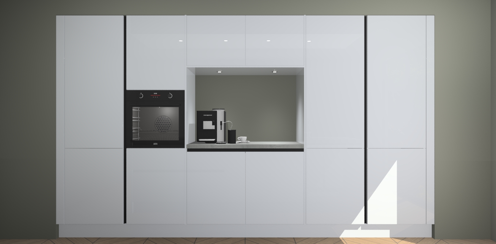De sneeuwwitte hoogglans greeploze keuken Lodz wordt geleverd met een set van 5 ingebouwde apparaten: Een oven, inductiekookplaat, afzuigkap, vaatwasser en koelkast. Deze kunnen gemakkelijk worden opgewaardeerd naar AEG. Met de gegarandeerde lage prijs en de snelle levering van 7 weken kan u er op rekenen dat de sneeuwwitte hoogglans greeploze keuken Lodz zo snel mogelijk uw huis bereikt!