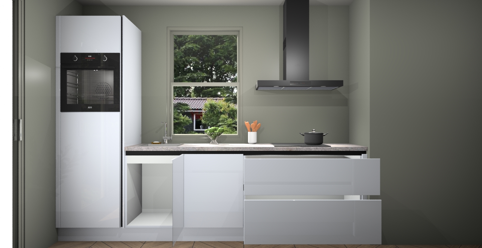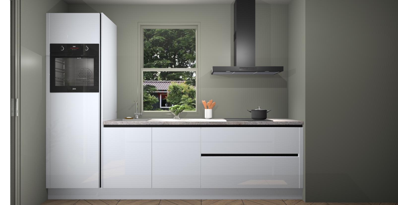 Een stijlvolle en praktische keuken als deze mag gezien worden. Dankzij de prachtige Sneeuwwitte hoogglans afwerking wordt de keuken gemakkelijk het middelpunt van uw huis - hij ziet er geweldig uit onder allerlei lichtomstandigheden, van dag tot nacht!
