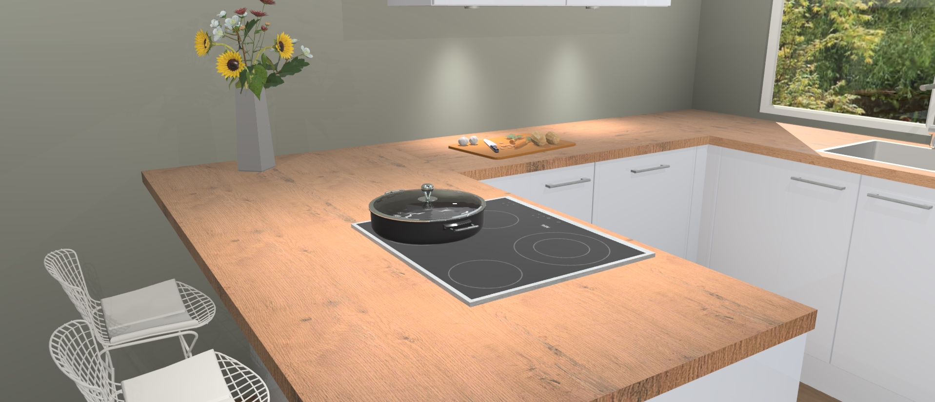 • Bij een hoekwerkblad zijn de hoeken in gevreesd en op maat gemaakt