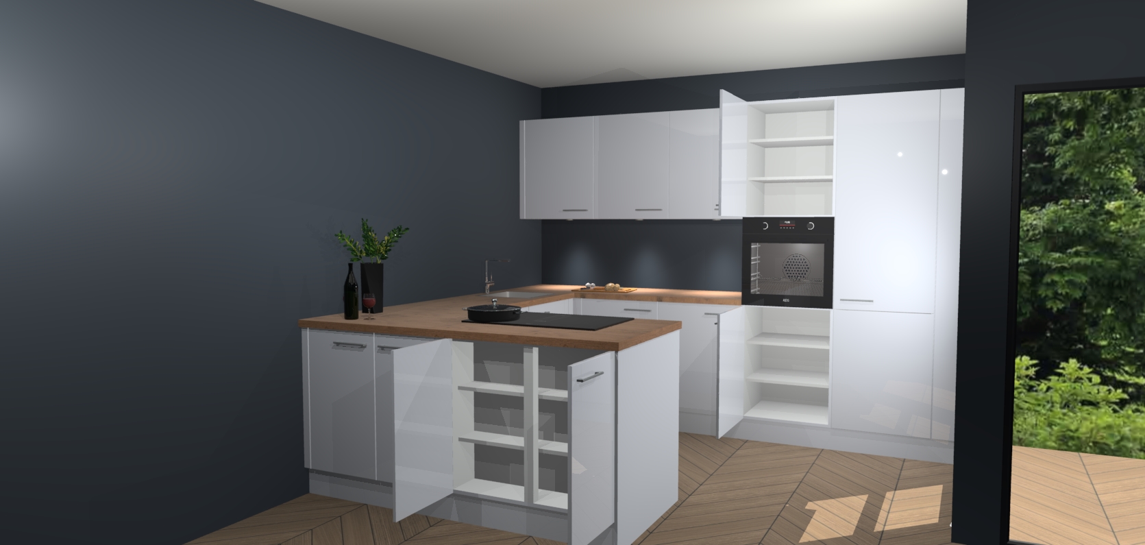 Inclusief plinten, stelpoten en werkblad