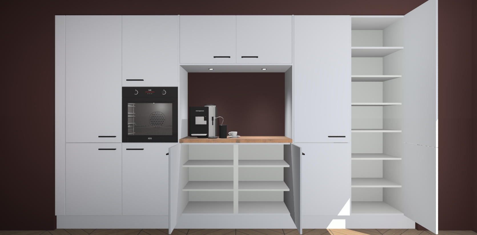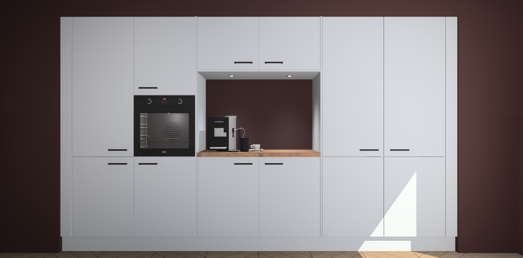 In deze box zijn alle kleuren verzameld van de deuren en werkbladen. Vraag de gratis kleurenbox aan en kijk thuis rustig verder!