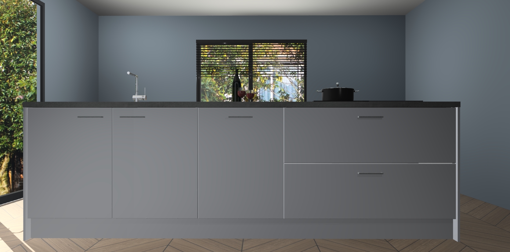 Inclusief plinten, stelpoten en werkblad