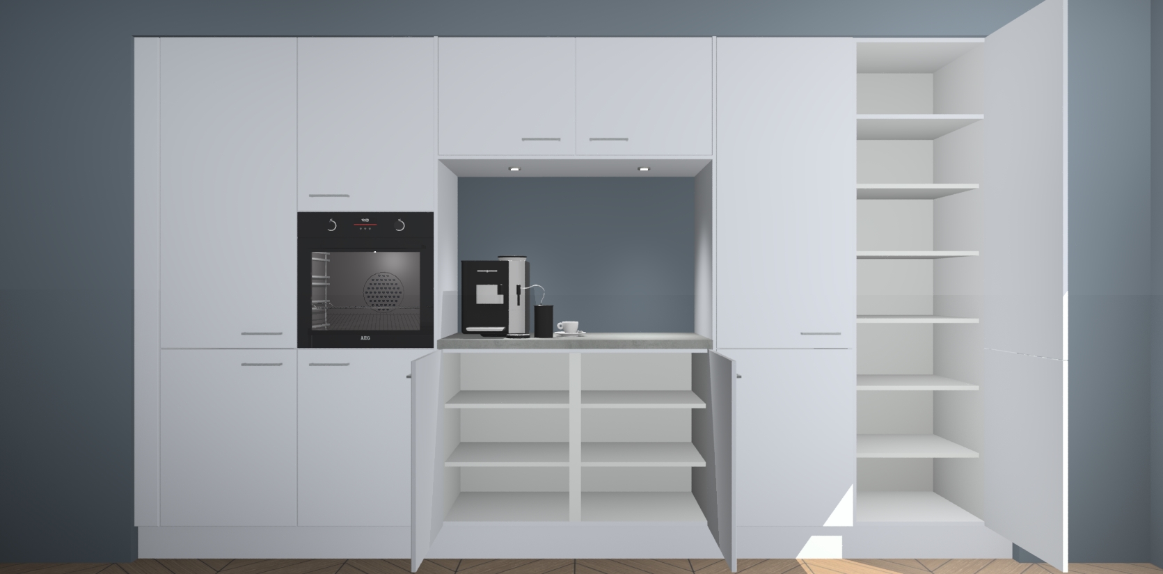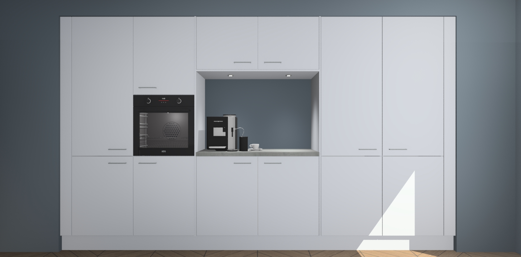 In deze box zijn alle kleuren verzameld van de deuren en werkbladen. Vraag de gratis kleurenbox aan en kijk thuis rustig verder!